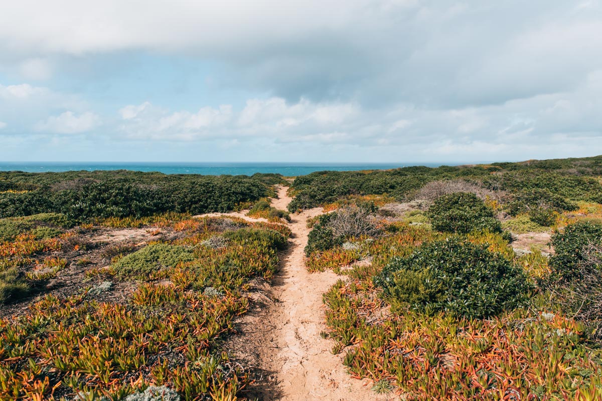 Der Weg erstreckt sich auf einer Länge von knapp 6 Kilometern von der Praia da Marinha bis zur Praia do Vale de Centeanes. Er führt direkt an den Klippen entlang und beeindruckt mit einem Panorama, das uns am laufenden Band zum Staunen gebracht hat. Wenn du die typischen Felsformationen der Algarve in voller Pracht erleben möchtest: Hier bist du richtig.