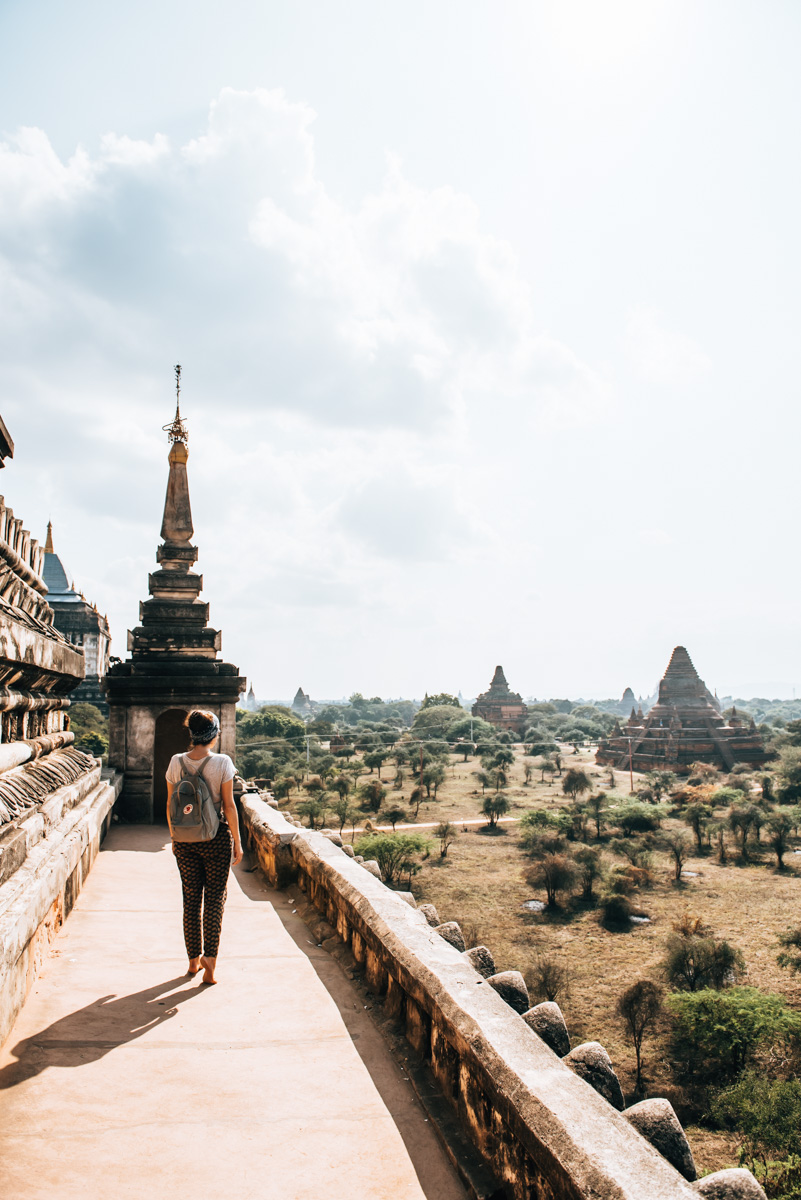 Toll fanden wir, dass man von diesem Tempel einen unglaublichen Weitblick auf Bagan genießt. Allerdings ist man hier leider nicht so nah dran an anderen Pagoden. (Ihr merkt schon, keine Pagode gleicht der anderen und jede hat so ihre Vor- und Nachteile).