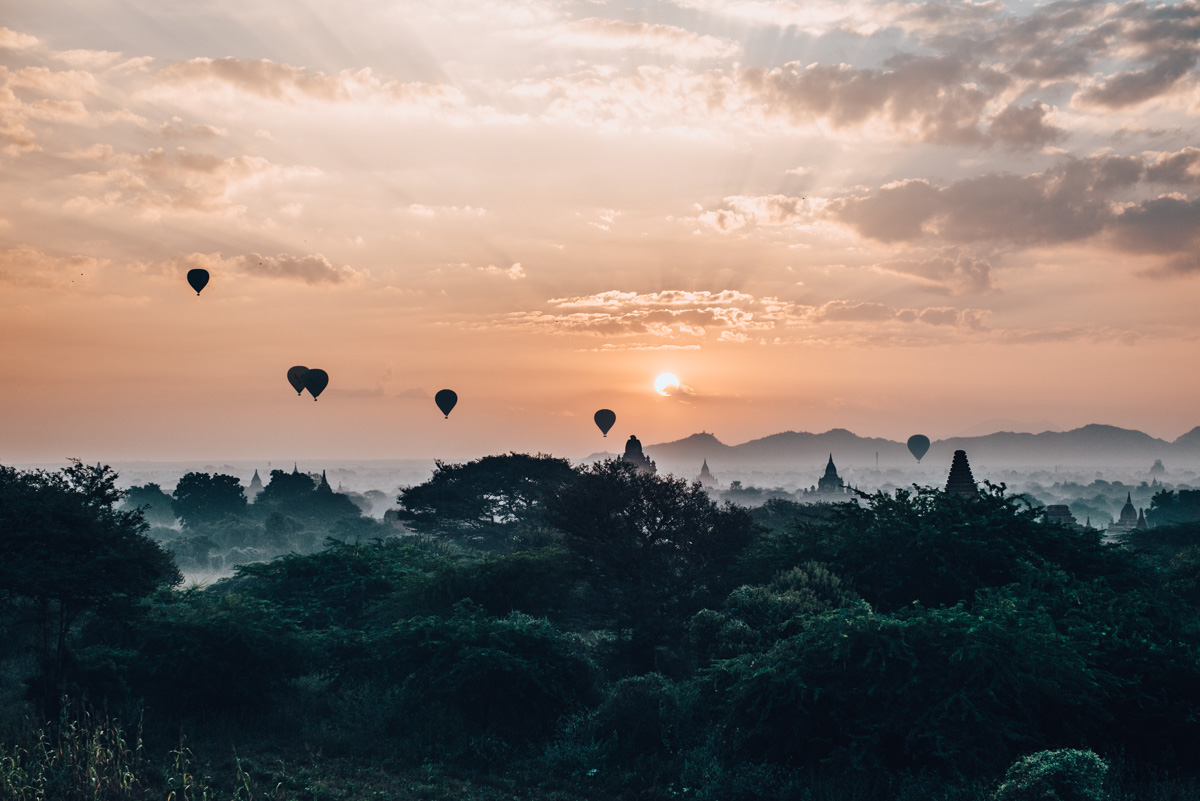 Während unseres Aufenthalts war die beliebte Sonnenaufgangspagode „Shwesandaw“ gerade geschlossen, daher wichen sehr viele auf die nahegelegene Bulethi Pagode aus – so auch wir. Der Ausblick von der Bulethi Pagode ist wirklich traumhaft und man sieht sogar die Heißluftballone in die Luft steigen – wenn auch aus ziemlicher Entfernung.