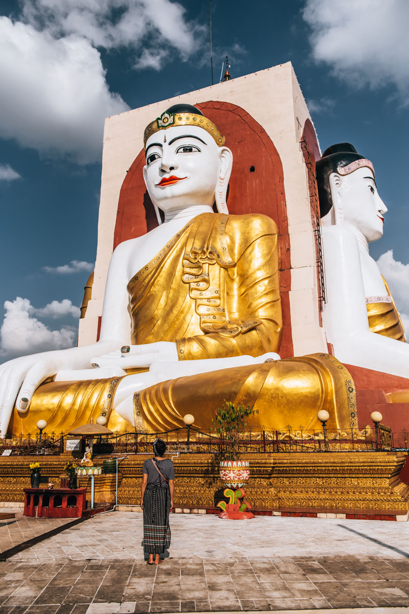 Die vier Buddhas von Kyaik Pun waren der erste Stopp unserer Tempel-Tour durch Bago und wir können dir einen Besuch dieser auf jeden Fall empfehlen. Vier riesige Buddhastatuen blicken hier Rücken an Rücken jeweils in eine andere Himmelsrichtung. Mit 27 Metern Höhe sind die Buddhas ganz schön imposant anzusehen.