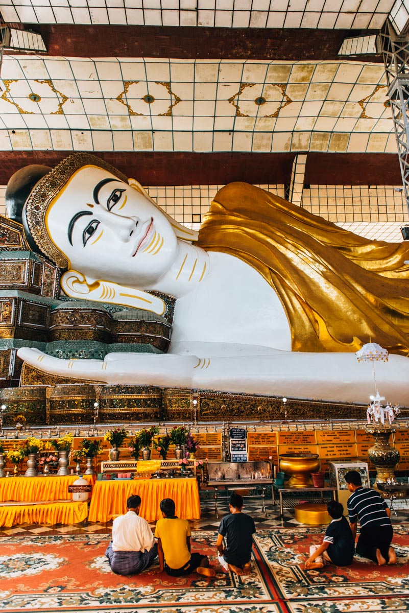 Unglaublich: Mit seinen 55 Metern Länge ist der liegende Shwethalyaung Buddha der zweitgrößte liegende Buddha der Welt. Die Dimensionen sind echt gewaltig und allein schon deshalb ist ein Besuch auf jeden Fall lohnenswert. Einzig die Wellblech-Überdachung finden wir persönlich nur wenig ansehnlich, aber gut, wir verstehen natürlich, dass dieser sehr besondere Buddha vor Wind und Wetter geschützt werden muss. Stell dich darauf ein, dass der Andrang beim Shwethalyaung Buddha ziemlich groß ist.