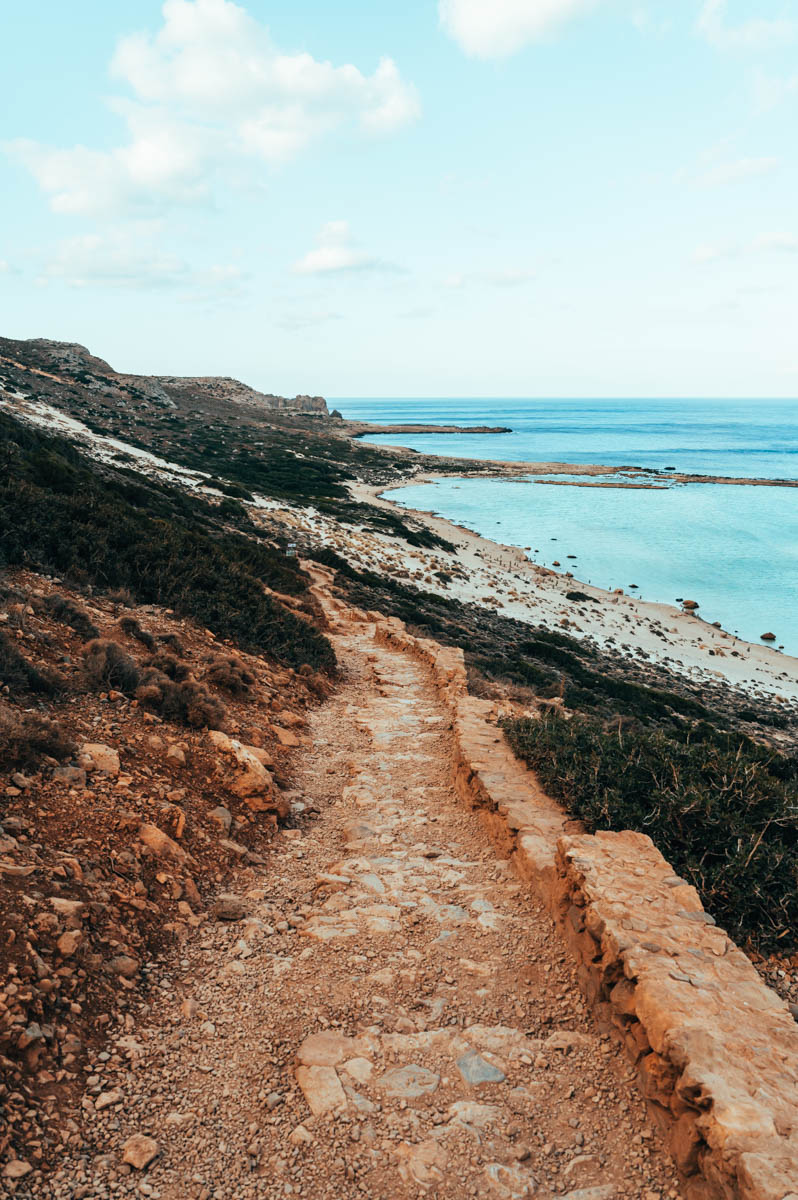 Vom (kostenpflichtigen) Parkplatz startet dann der Fußweg hinab zur Lagune von Balos. Für die Strecke musst du ungefähr 20 Minuten einplanen. Der ganz große Vorteil dieser Anreise: Du kommst beim Wanderweg nach ungefähr fünf bis zehn Minuten an einem Aussichtspunkt vorbei, von dem du einen traumhaften Panoramablick über die Lagune von Balos genießt. Der Weg ist nicht anspruchsvoll, geschlossene Schuhe sind aber von Vorteil.