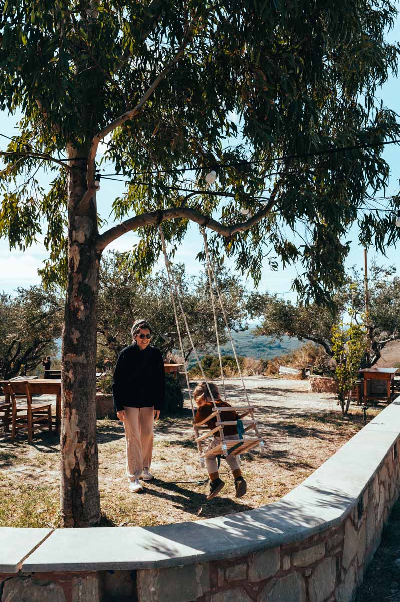 Selbst dann, wenn du keine Lust auf eine Führung hast, lohnt es sich unbedingt, bei Biolea vorbeizuschauen. Das Anwesen mitten im Olivenhain mit dem riesigen Garten samt Blick aufs Meer ist einfach wunderschön. Das entspannte Flair hatte es uns auf Anhieb angetan und auch für Kinder ist der Ausflug top. (Es gibt eine Schaukel, viel Spielzeug, einen Hund, eine Katze und und und.)