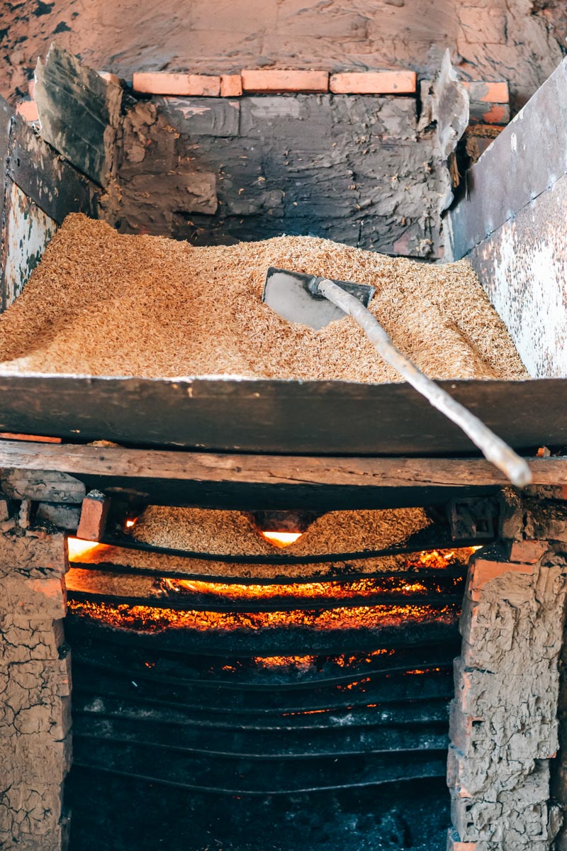 Auf unserer Tour besuchten wir unter anderem eine Ziegel-Fabrik und eine Kokosnuss-Bonbon-Fabrik (so gut!). Wir waren zu Gast bei einer einheimischen Familie, die uns das umfangreichste Mittagessen unserer gesamten Vietnam-Reise auftischte. Wir durften uns aus deren Garten eine Papaya pflücken, tranken die beste und süßeste Kokosnuss unseres Lebens, aßen die ungewöhnlichsten Früchte (schon mal Wasserkokosnuss probiert?), fuhren mit einem winzigen Boot durch die Kanäle des Mekong Deltas und beobachteten die Menschen beim Fischen.
