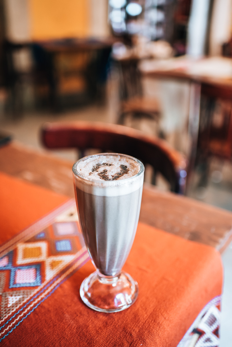 Preise: Kalter Kakao ca. 45 Pesos, Espresso 25 Pesos
