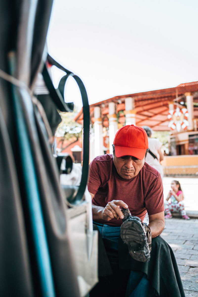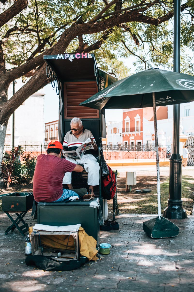 Im Park auf dem Hauptplatz reiht sich – wie auch in Mérida und Valladolid – ein Schuhputzer an den nächsten. Der Schuh-Besitzer oder die Besitzerin macht es sich im Sessel Zeitung lesend bequem, während die Schuhe fein säuberlich gereinigt und poliert werden. Klingt gut, oder?