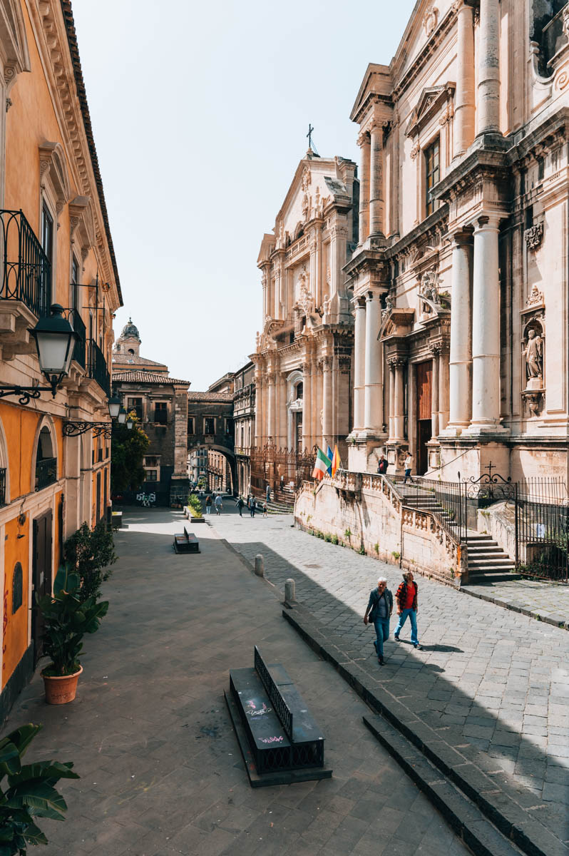 Catanias wohl prunkvollste Straße ist die Via Crociferi. Entlang dieser eher kurzen Gasse (gerade mal 400 Meter sind es, um genau zu sein) befinden sich auf relativ engem Raum unzählige sizilianische Barockbauten und vor allem imposante Kirchen.