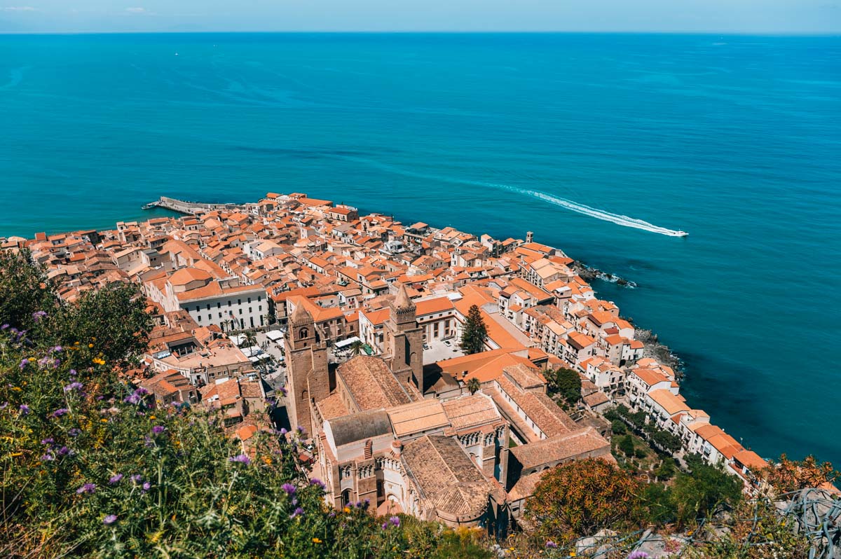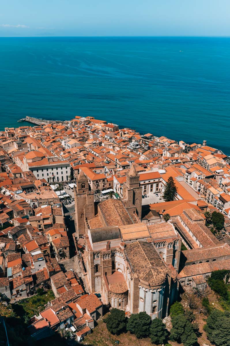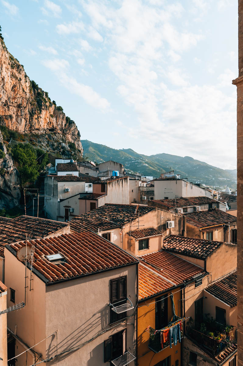 - Die Lage von Cefalù ist gigantisch schön: Direkt hinter der Altstadt ragt der Berg Rocca di Cefalù in die Höhe. Er ist von vielen Orten in der Altstadt sichtbar und verleiht der Stadt ein besonderes Flair.