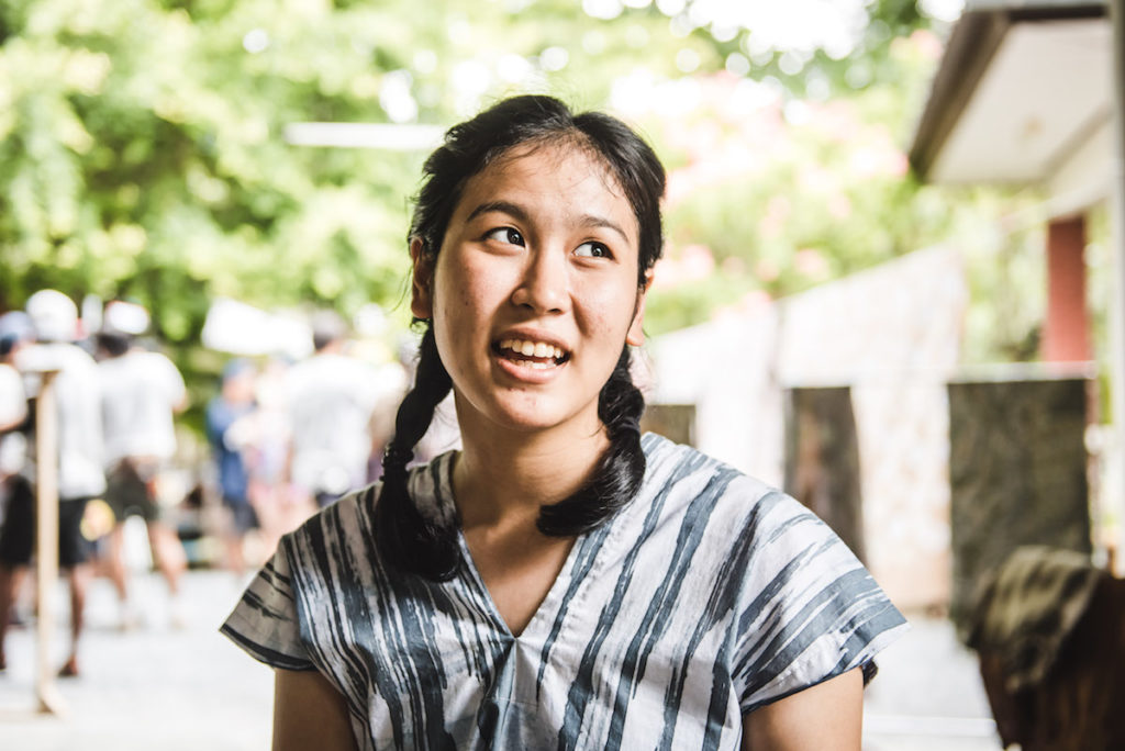 Erst hat sie bloß ein wenig gegrinst, dann begann sie zu kichern und zu lachen. Als dieses Mädchen versuchte, uns die Technik der Batik zu lehren, musste sie über unsere nicht vorhandenen Fähigkeiten ziemlich schmunzeln – und wir übrigens auch!