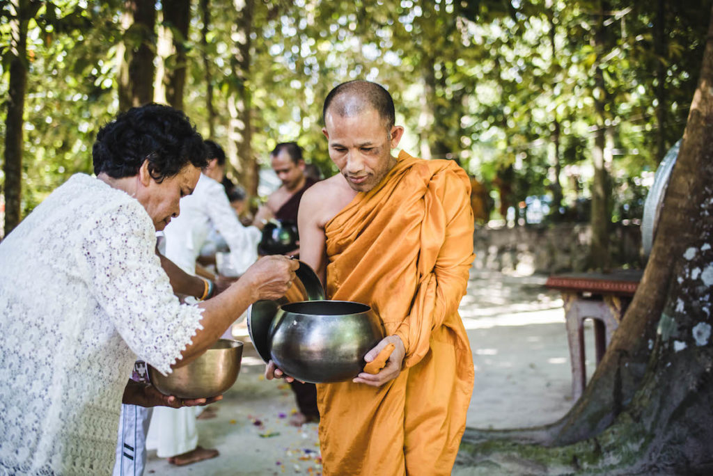 Dieser thailändische Mönch reiste anlässlich einer 10-tägigien Zeremonie in einen Tempel in der Provinz Nakhon Si Thammarat. Nach dem gemeinsamen Gebet schenkten die Bewohnerinnen und Bewohner des Dorfes jedem Mönch ein Löffel voll Reis.