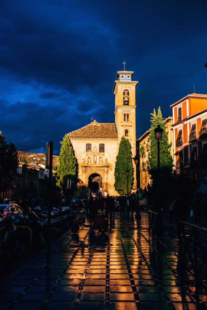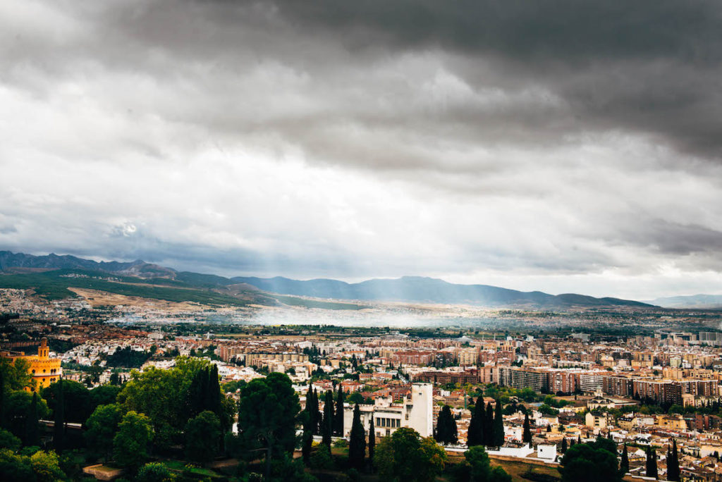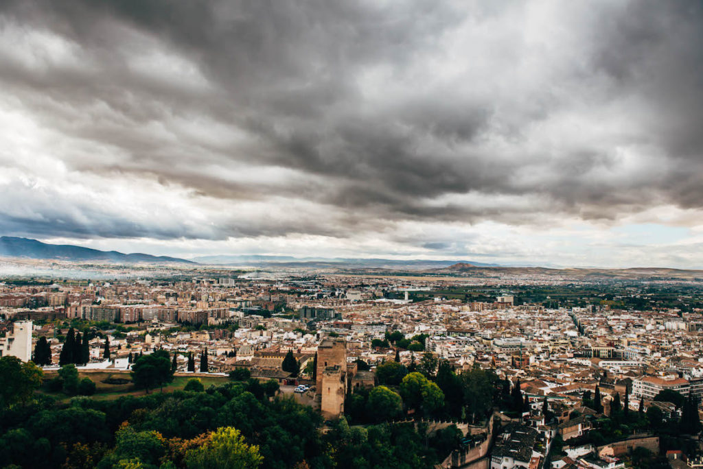 Zum Sonnenuntergang zieht es viele zum Mirador de San Nicolás, dem vermutlich bekanntesten Aussichtspunkt Granadas. Zwar ist dort dann einiges los, aber der Blick auf die Alhambra ist auch wirklich beeindruckend. Wundere dich übrigens nicht über die teils verrückte Lichtstimmung in unseren Bildern. Am Nachmittag/Abend unseres Besuchs herrschte in Granada Weltuntergangsstimmung, dafür wurden wir anschließend mit dem großartigsten Sonnenuntergang über der Alhambra belohnt.