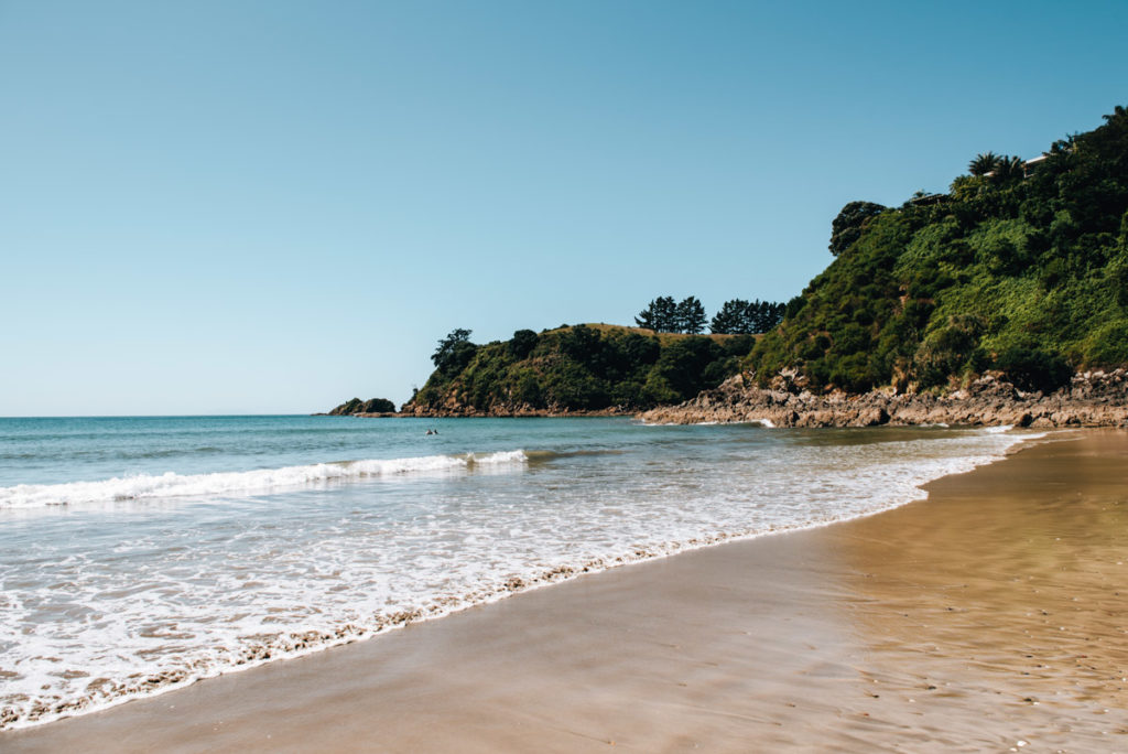 After a short walk along the beach and a delicious stop by the ice cream parlour “Island Gelato Company”, we decided to move on. Our plan was to find a nice beach for swimming and we ended up in Palm Beach, which was a very beautiful bay. There were a lot more people than we’d expected, but still less than that in Oneroa.