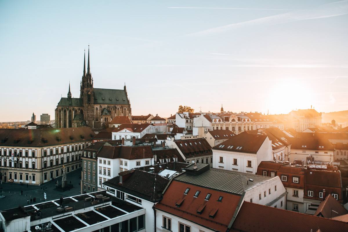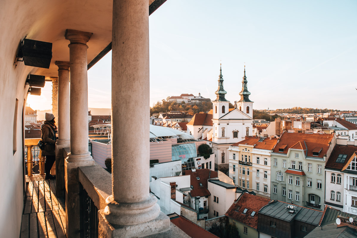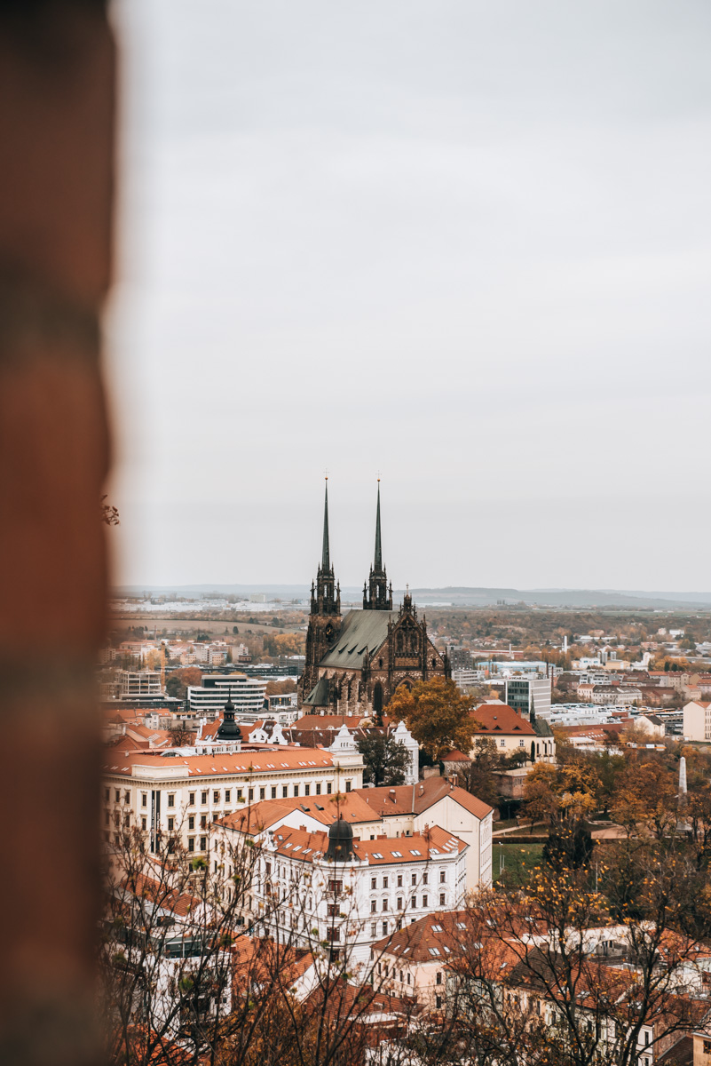 In our opinion, the most beautiful view over Brno is from the 63m high tower of the Old Town Hall (“Stará radnice”). An interesting staircase will bring you up to the top of the tower, where you can see in all directions from above. Being in the middle of the centre, you are also pretty close to the impressive St. Peter and Paul Cathedral. Our tip: Visit the tower just before sunset if possible, when the sun casts the best light and glow over the city.