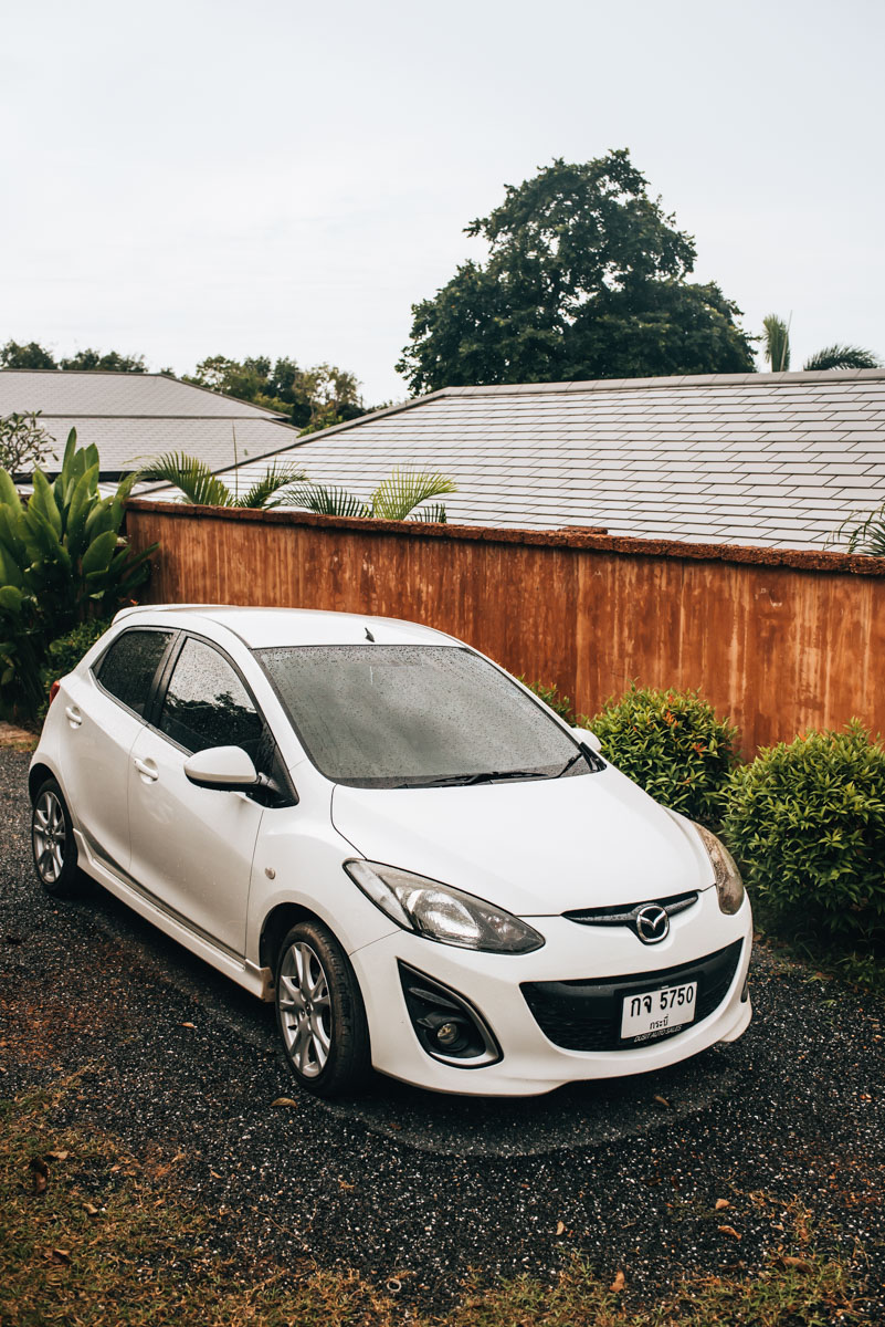 If you’re not comfortable with scooters or if you have a larger group, (maybe a family with kids) then renting a car makes more sense. We almost always opt for scooters, but on Koh Lanta we rented a car for the first time in Thailand. We paid 1200 baht per day (or 24 hours), which also includes liability insurance – unlike the scooter rental. However, the question is: to what extent are you covered in case of an accident?