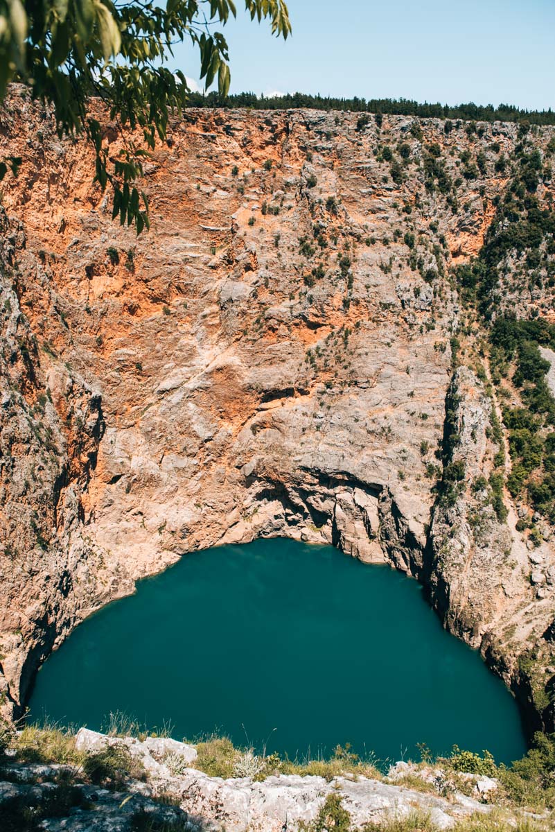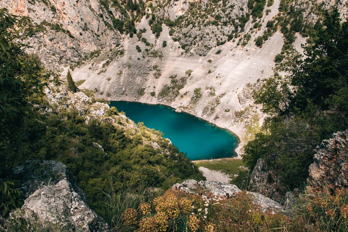 The Blue Lake (‘Modro Jezero’) is already quite simply a surreal, breathtaking sight from the bird’s eye view. It was probably created from the collapsing of the karst layers above. The water is fed from underground paths. Therefore, it is possible that the water is very low during the height of summer, or the lake can even dry up for a short time.