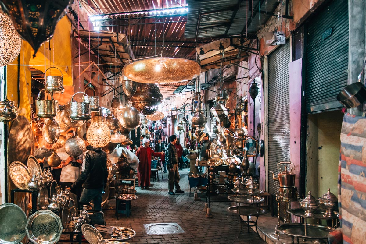 Keeping your bearings in the medina is practically impossible. So just go ahead and see where your path leads you. It is particularly crowded in the souks, i.e. the markets of Marrakech. If you go north from Djemaa el Fnaa (the huge square – more on that in a moment), you will get straight to the souks.