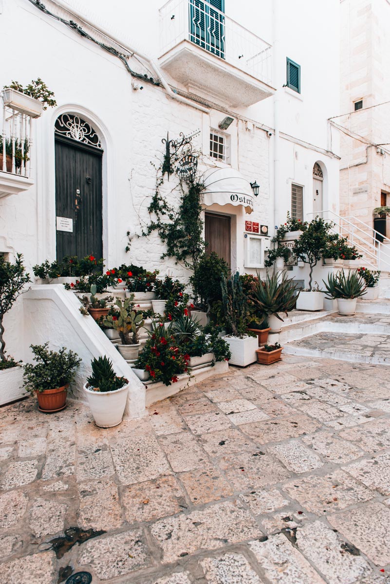 Perched on three hills, Ostuni is visibly impressive from afar. Once you arrive in the old town, a labyrinth of narrow, paved alleys awaits you. The streets undulate up and down, so we definitely recommend wearing comfortable footwear.