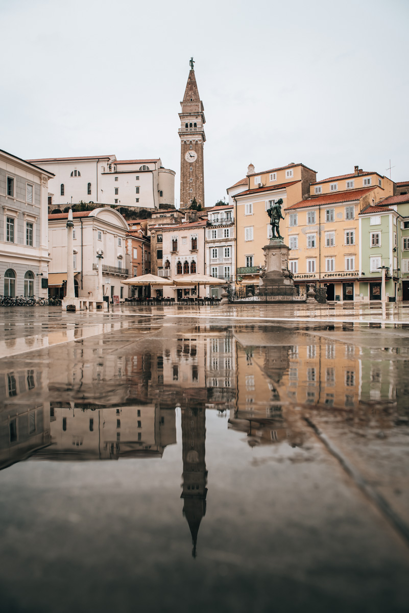Piran is probably the most beautiful town along the Slovenian coast, and yet still charming without its usual backdrop of a bright blue sky. Our visit somehow coincided with an Adriatic low and this meant that our photos would be among the few on the Internet, where this Slovenian coastal city is presented in moody grey. However, even rainy weather cannot seem to detract the charm and beauty of Piran.