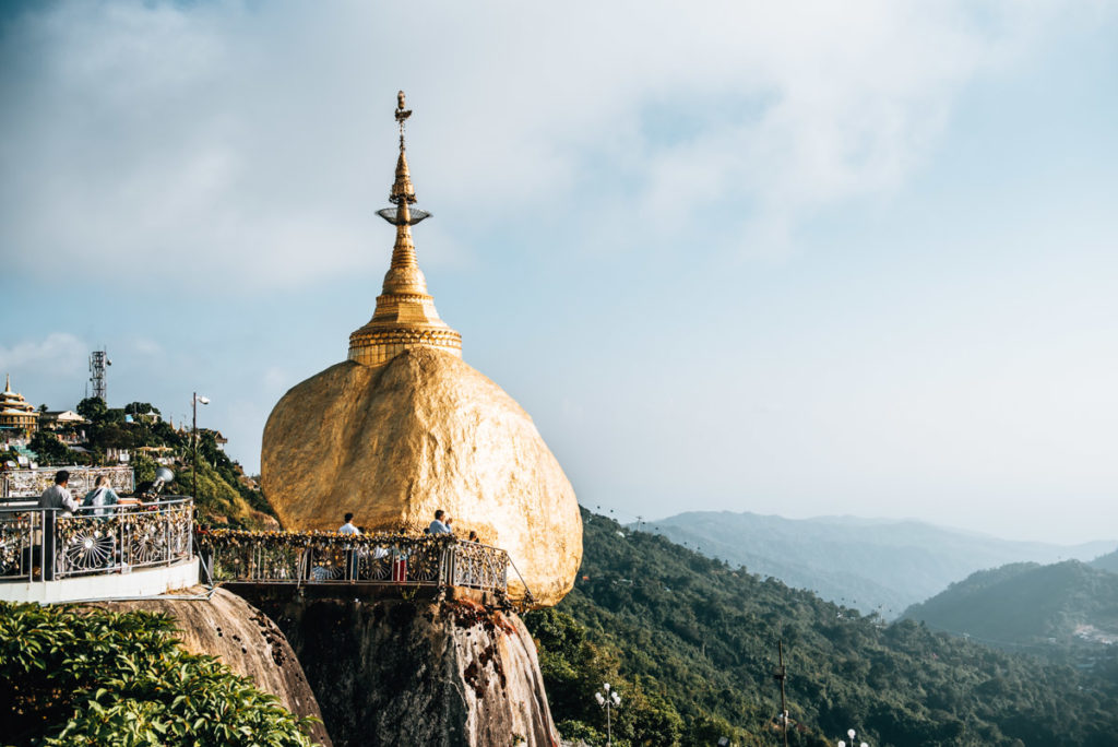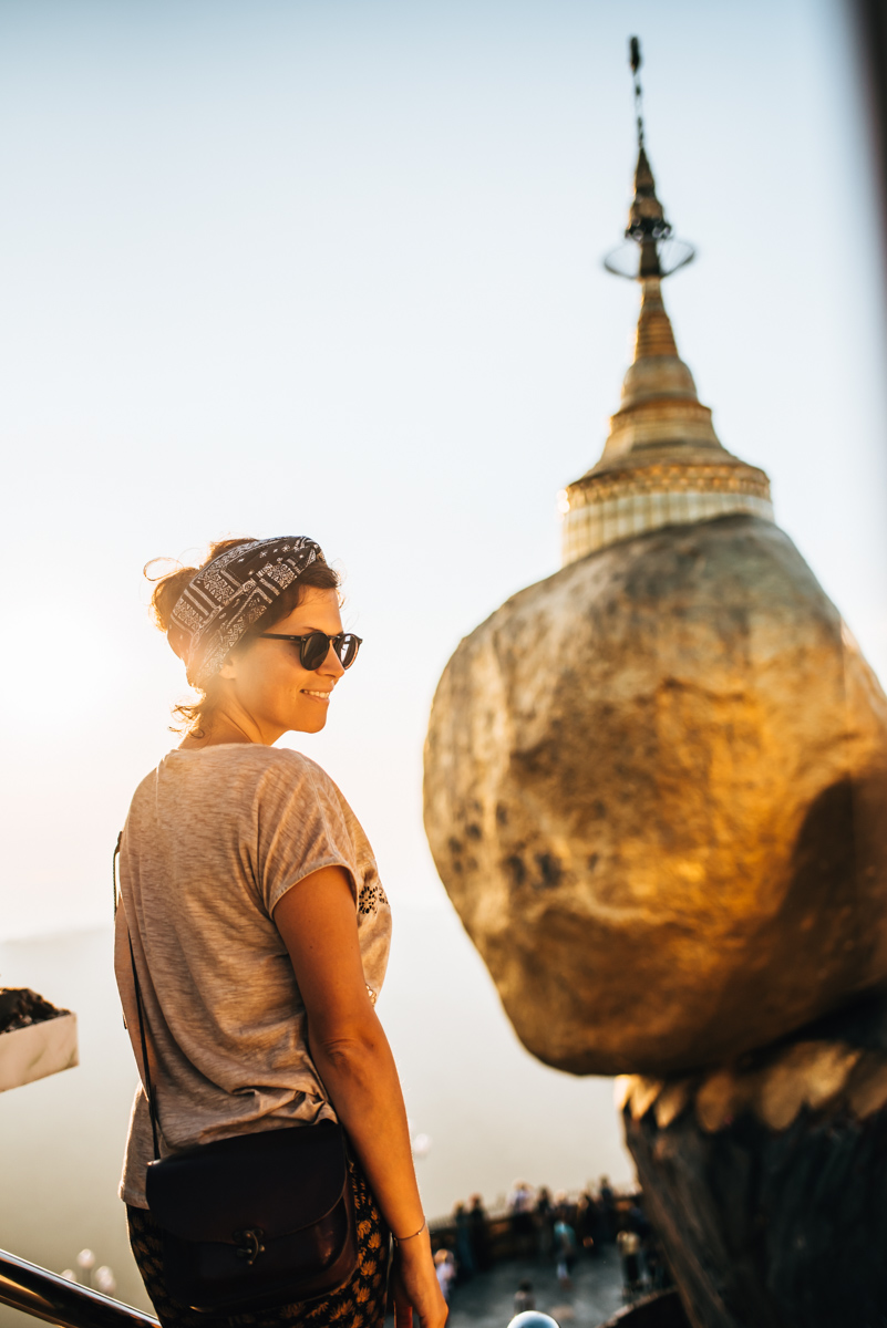 Here, located about 160km north of Yangon, you can discover one of the most sacred site in all of Myanmar: the Golden Rock – also called the Goldener Fels (German) or Kyaiktiyo Pagode. Like a throne, perched on amountain summit at 1100m elevation, it is a sight to behold. This was one of the most spectacular destination on our Myanmar trip and we want to share with you some of our tips for this place!