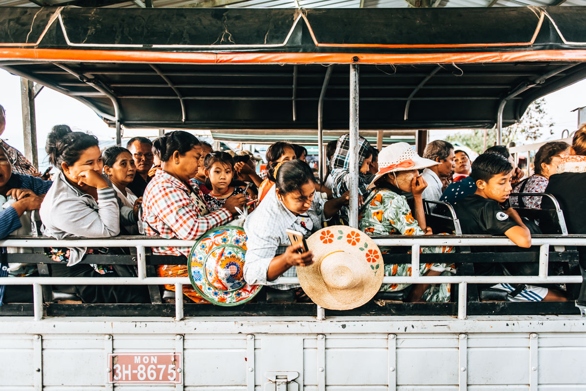It’s like this, the mountain trail leading up to the Golden Rock is relatively windy and in many parts, very steep and narrow. In order to allow masses of people up the mountain, the locals came up with an interesting idea. They reconstructed old trucks which now drive up and down the mountain in an exclusive manner. However, they are reconstructed in a way that the cargo area is equipped with (very narrow) wooden benches, and this serves as the seating area. The whole setup is just as uncomfortable as it sounds. Honestly, it was borderline torture, mainly because every time you hit a curve, you’d slide along to your left and then your right, like playing corners – but unwillingly so.