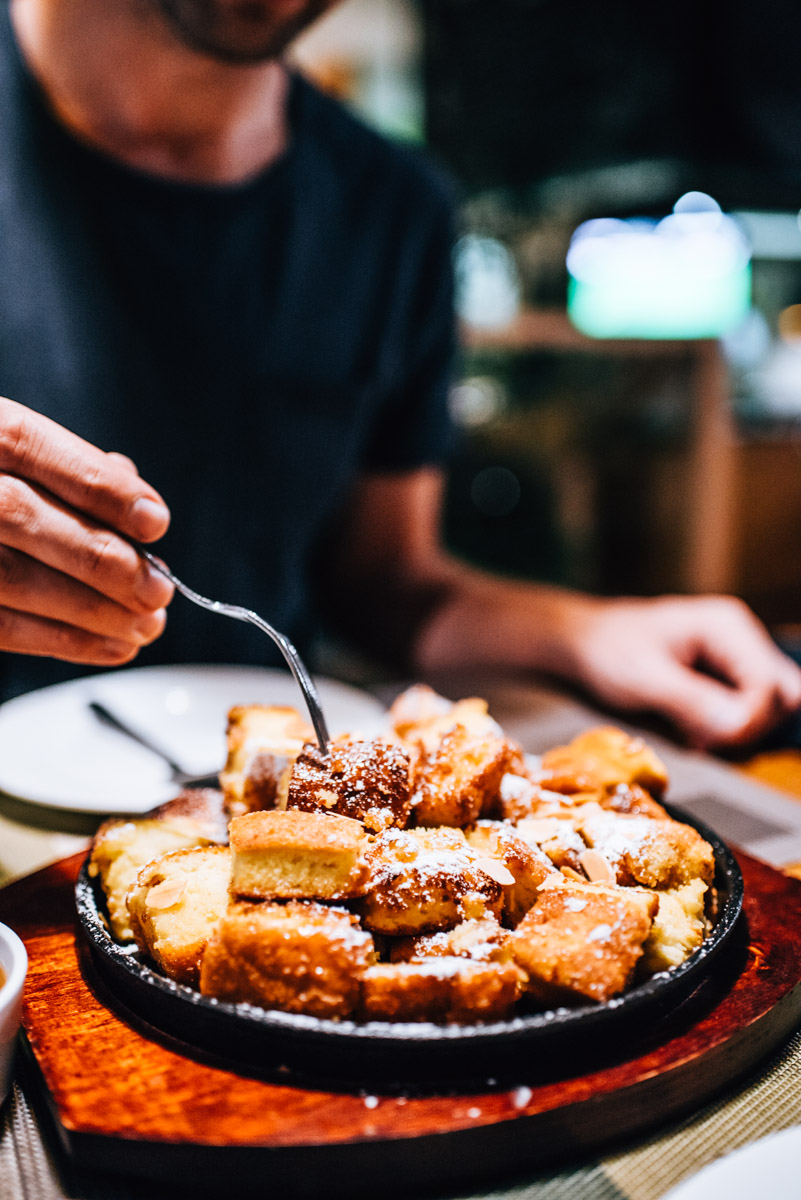 After a few weeks in Southeast Asia, we really felt like eating European food again and ended up at this German Restaurant called ‘Mahlzeit’ after having been recommended it. The restaurant is run by a German owner and despite its rather expensive prices, it was totally worth it! The thin pizza style Flammkuchen was excellent and the traditional Käsespätzle (cheese noodles) was surprisingly authentic. A dinner for two people, we paid 40,000 kyat. However, we do have to point out that we did not hold back when it came to ordering, dessert followed suit with Kaiserschmarrn and soon enough alcohol started flowing! Well, if you’re going to do to something, why not commit and go all out! Haha