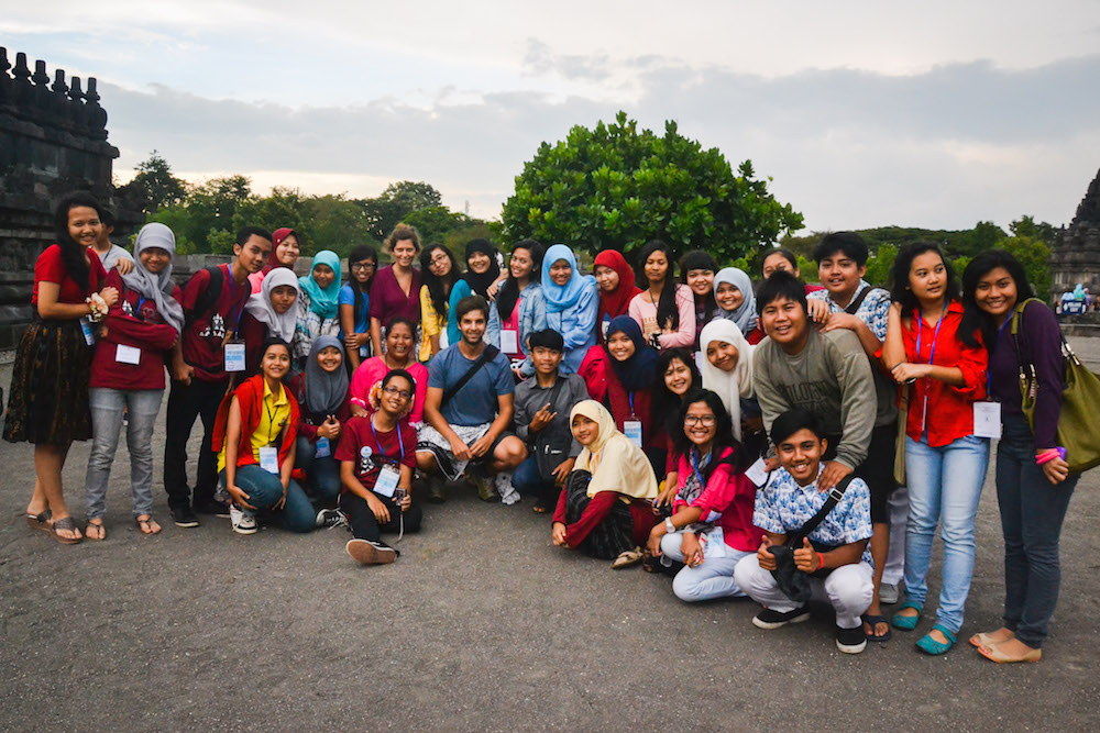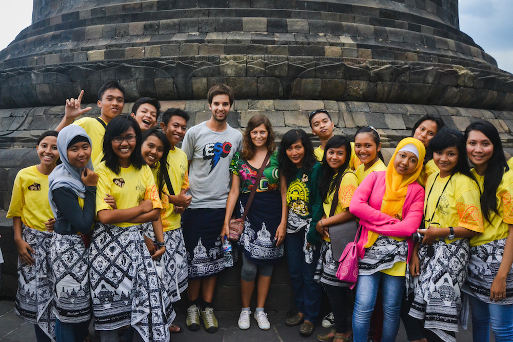 The largest stupa, right on top of the temple, towers up into the sky. From up there (but also from further down) you have a fabulous view over the jungle. Rather interestingly: We were asked countless times by young Indonesians (primarily school groups) to take a photo together with them.