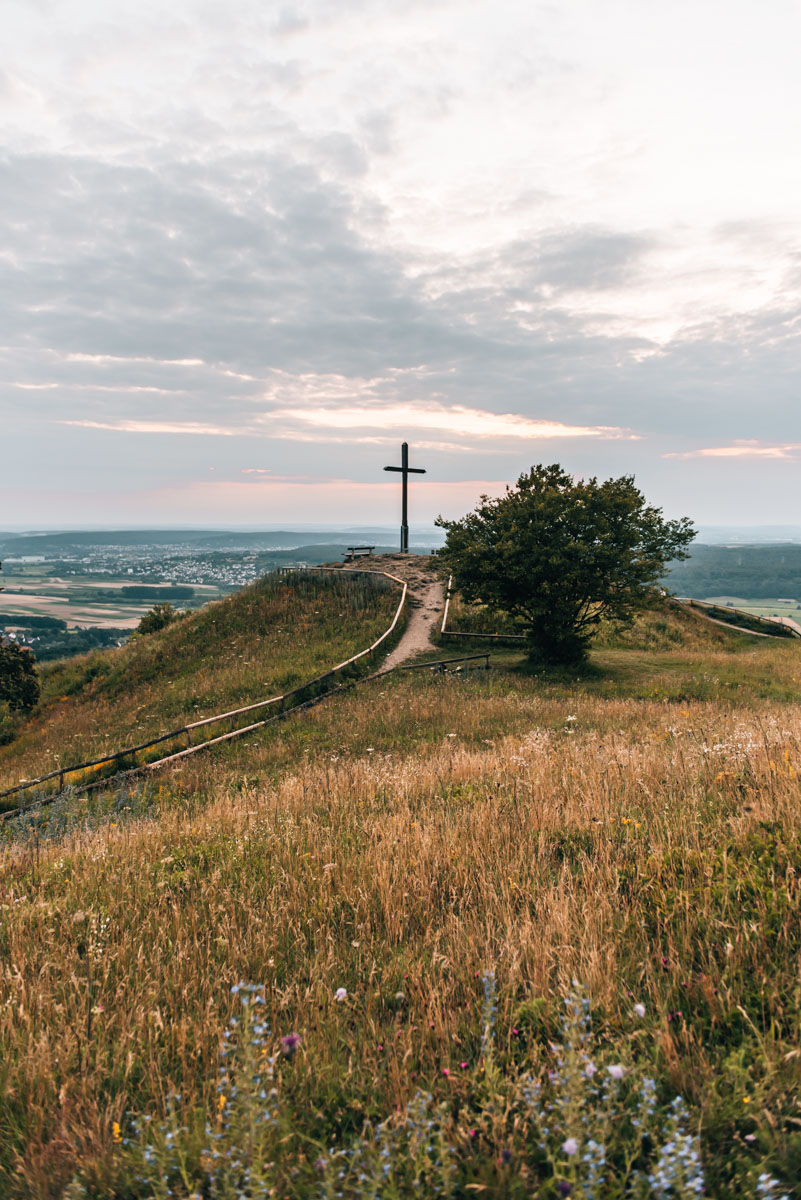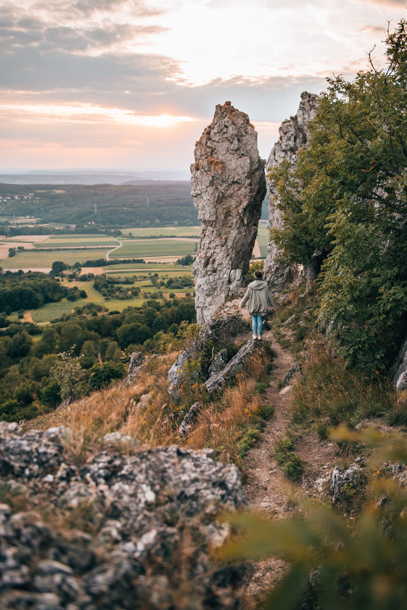 Ganz besonders schön fanden wir das Walberla mit seinem Hochplateau, der fotogenen Walburgiskapelle sowie den beiden senkrecht emporragenden, zerklüfteten Felsen. Von hier oben hast du einen herrlichen Weitblick ins Tal und kannst in der Ferne sogar den Dom von Bamberg erkennen. Die Sonne geht übrigens nahezu perfekt hinter der Felsformation unter. Wer Wetterglück hat, sollte sich dieses Spektakel nicht entgehen lassen.