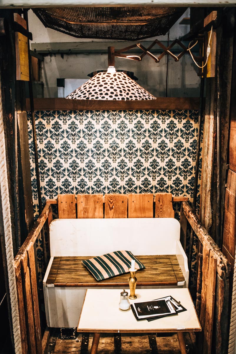 Das Augustin liegt im 15. Bezirk, weit abseits der Hotspots von Wien und trotzdem ist es immer voll. Warum? Weil es einfach den Nerv der Zeit trifft. Das Augustin ist ein bisschen wie ein großes Wohnzimmer, recht düster, sehr vollgeräumt, aber einfach super gemütlich.