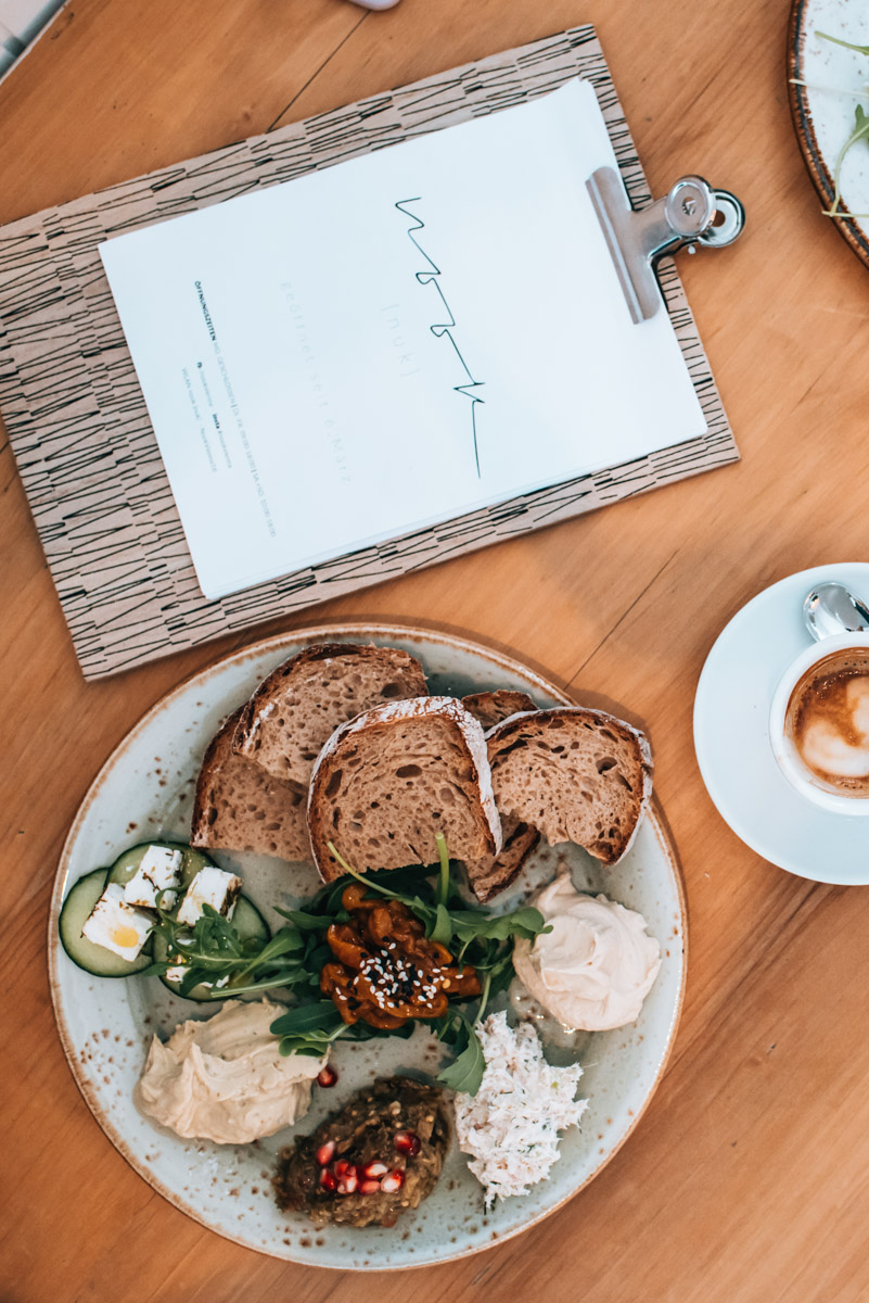 Die Speisekarte ist überschaubar, aber uns stört das nicht – ganz im Gegenteil! Qualität statt Quantität, wie wir meinen. Und die Qualität stimmt auf jeden Fall! Es gibt unter anderem köstliche belegte Brote und es wird Wert auf biologische Produkte gelegt. Auf dem Foto seht ihr die Nook’s Frühstücksplatte mit verschiedenen Aufstrichen. Die ist sowas von lecker, das wir immer am liebsten noch eine zweite Portion bestellen würden.