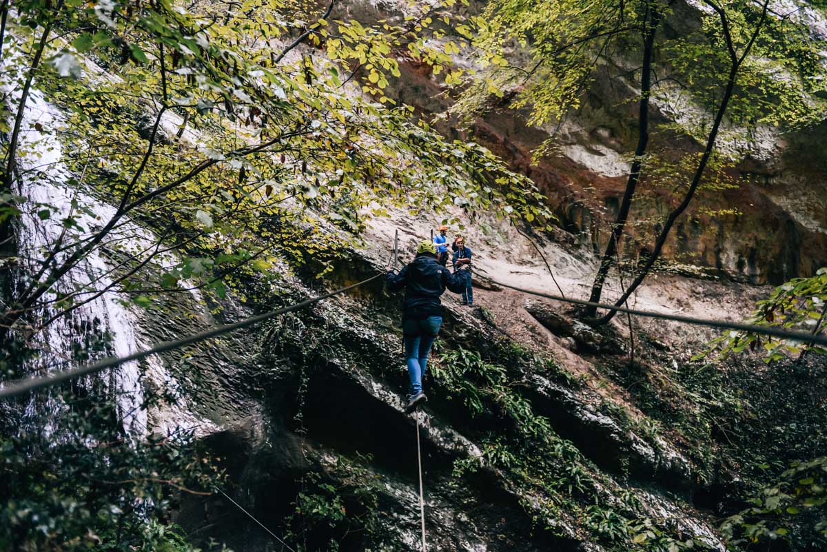 Wir selbst haben uns an die Via Ferrata Rio Sallagoni gewagt. Soviel vorweg: Keine Sorge, der Klettersteig ist zwar eine kleine sportliche Herausforderung, doch auch für Neulinge wirklich machbar. Er führt in knapp drei Stunden durch eine reizvolle Schlucht. Du kletterst an steilen, mächtigen Felswänden entlang und hörst dabei das Rauschen des Rio Sallagoni – Wahnsinn!