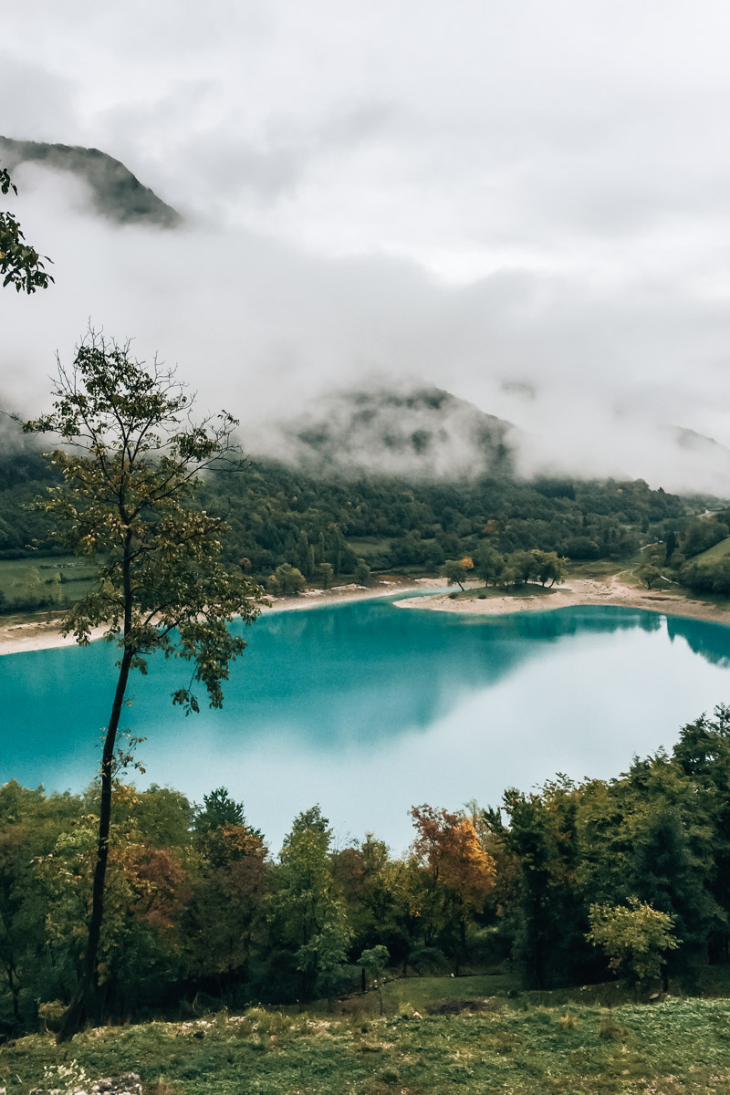 Auf dem Weg zur Käserei Fontanèl kommst du bei einem wahren Naturjuwel vorbei, dem Tennosee. Die Fotos täuschen nicht: Die Farbe des Sees ist wirklich so intensiv! Bei unserem Besuch hat uns leider das schlechte Wetter einen Strich durch die Rechnung gemacht, aber ganz ehrlich: Nicht einmal Nebel und Regen tun der Schönheit dieses Sees Abbruch. Hier solltest du unbedingt einen Zwischenstopp einlegen.