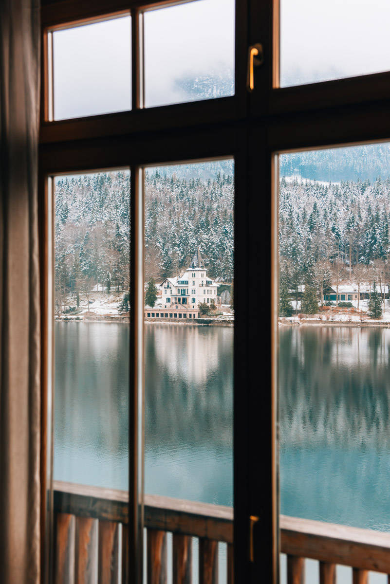 Wir sind aus dem Staunen gar nicht herausgekommen, als wir die Vorhänge unseres Zimmers zur Seite geschoben haben. So eine großartige Aussicht aus einem Hotelfenster hat man wirklich selten, oder? Wir haben uns im Seehotel Grundlsee von der ersten Minute an unfassbar wohl gefühlt. Und nein, das lag nicht nur an der Aussicht, sondern vor allem auch an der angenehmen Atmosphäre im gesamten Hotel – vom Empfang bis zum Wellnessbereich ist das Ambiente herrlich.