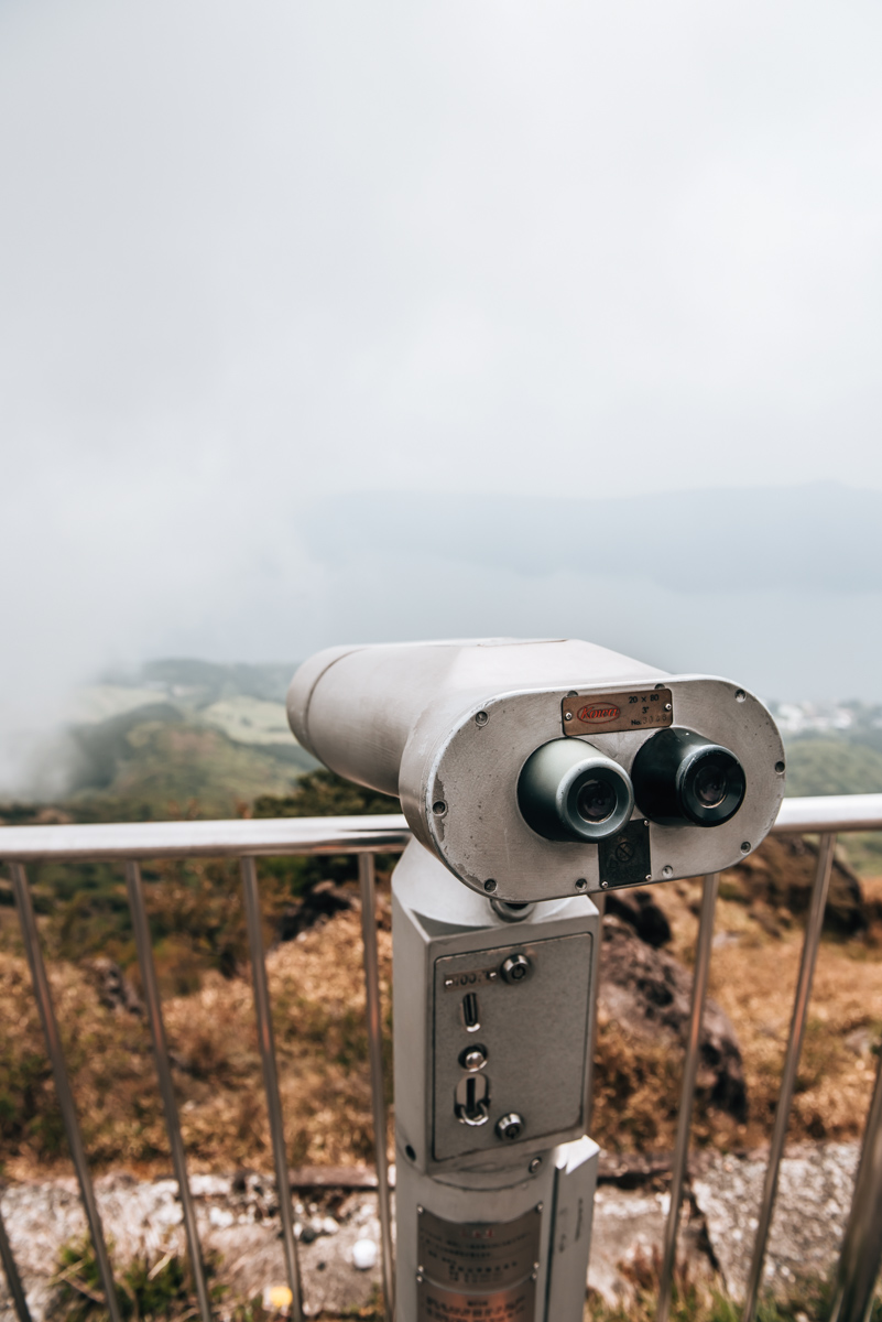 Bei klarer Sicht siehst du während der Fahrt mit der Seilbahn und vom Gipfel den Mount Fuji. Allerdings musst du dafür schon etwas Glück haben – wir hatten es leider nicht. Dennoch fanden wir das Ambiente auf dem Berggipfel sehr speziell und mystisch. Unser Tipp: Nimm dir etwas zum Anziehen mit. Dort oben ist es doch um einiges kühler als am Seeufer.
