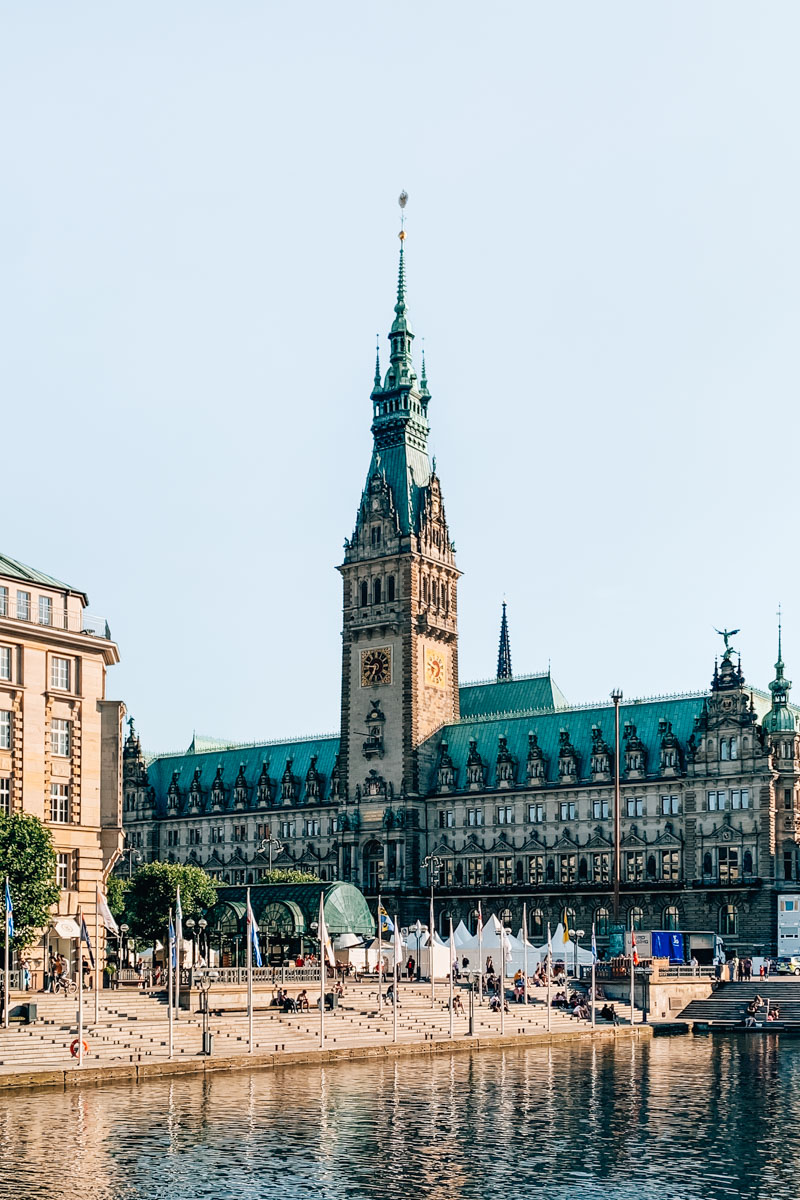 Nur wenige Gehminuten vom Jungfernstieg entfernt liegt eines der unserer Meinung nach schönsten Bauwerke Hamburgs: das Rathaus. Das Neorenaissance-Gebäude ist nicht nur überraschend groß, sondern auch überraschend beeindruckend. Wir empfehlen dir, auch den Innenhof des Rathauses zu betreten. Der ist nämlich ebenfalls sehr sehenswert.
