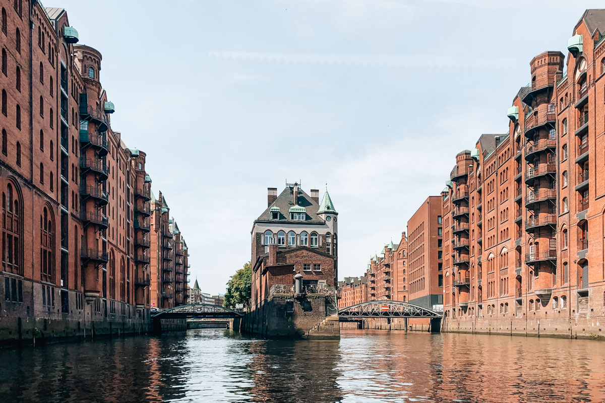 Nahe der Elbphilharmonie gelangst du in die einzigartige Speicherstadt. Dieses historische Backsteinensemble ist tatsächlich der weltgrößte historische Lagerhauskomplex. Die Speicherstadt ist UNESCO-Weltkulturerbe und unserer Meinung nach einer der tollsten Orte in Hamburg.