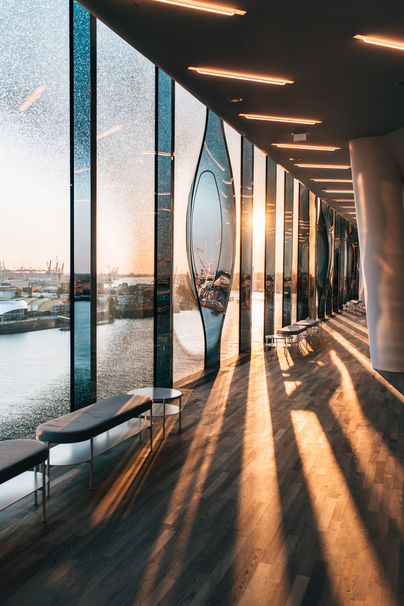 Die kostengünstigere Alternative ist ein Besuch der Aussichtsplattform, die sich in 37 Metern Höhe zwischen dem Backsteinsockel und dem gläsernen Aufbau befindet. Diese Aussichtsplattform nennt sich Plaza. Im Besucherzentrum der Elbphilharmonie erhältst du dein Ticket für denselben Tag kostenlos – vorausgesetzt, es sind für diesen Tag noch genügend Tickets verfügbar! Falls du dein Ticket lieber schon im Voraus online kaufen möchtest, kostet es 3 Euro.