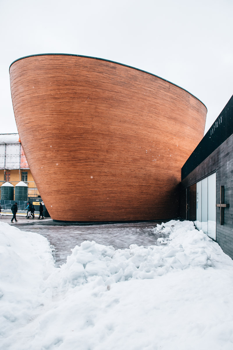 Ebenfalls im Bahnhofsviertel, nur fünf Gehminuten vom Bahnhof entfernt, gelangst du zum nächsten Architektur-Highlight Helsinkis, der Kamppi-Kapelle, auch Kapelle der Stille genannt.