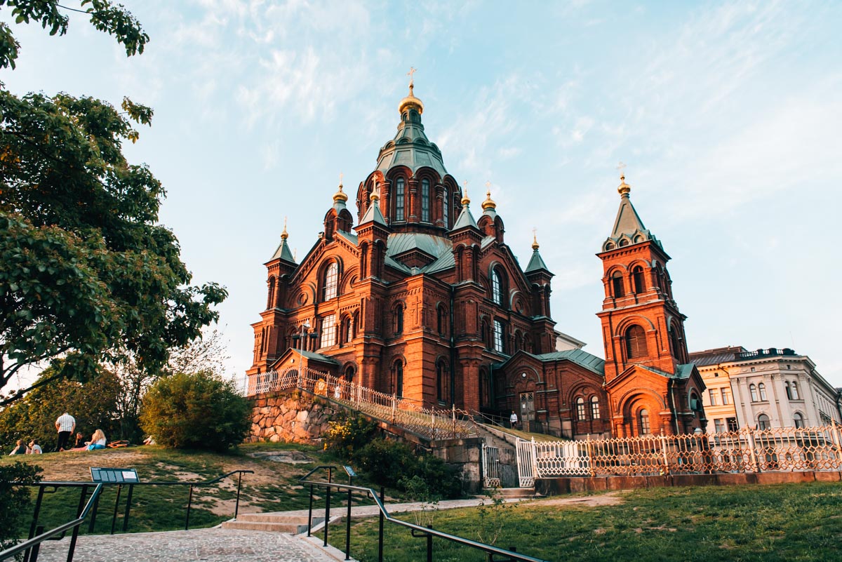Vom Hafen erblickst du bereits die nächste Sehenswürdigkeit in Helsinki: die Uspenski-Kathedrale. Diese orthodoxe Kirche aus rotem Backstein thront auf einem kleinen Hügel und ist dank ihrer russisch-byzantinischen Architektur ein ziemlicher Blickfang.