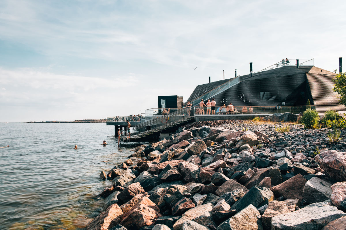 Die Löyly Sauna befindet sich direkt am Wasser entlang einer netten Promenade – hier liegt auch ein kleiner Stadtstrand, der sich im Sommer großer Beliebtheit erfreut.
