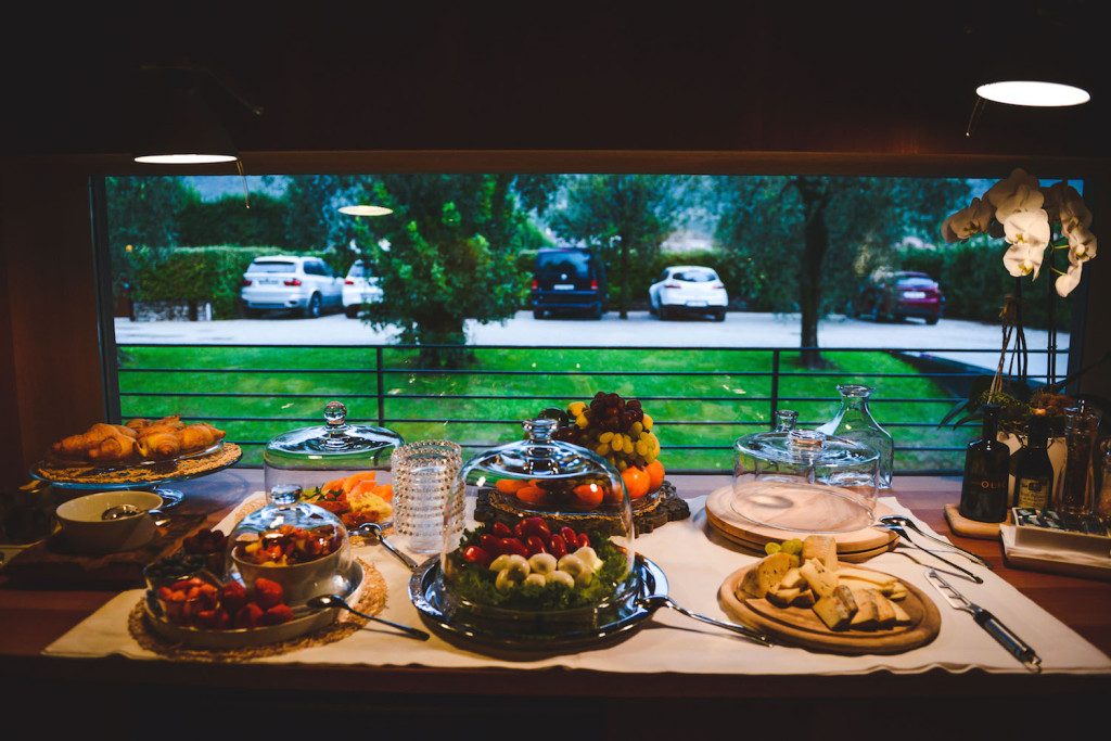 Das Buffet: Klein, aber fein – genauso wie wir’s lieben! Es gibt ganz viel frisches Obst (sogar Granatapfelkerne!), leckeren Käse aus der Region, Croissants und anderes Gebäck, Marmeladen, Kuchen und und und. Und das Beste: Edy und Michela produzieren ihr eigenes köstliches Olivenöl.