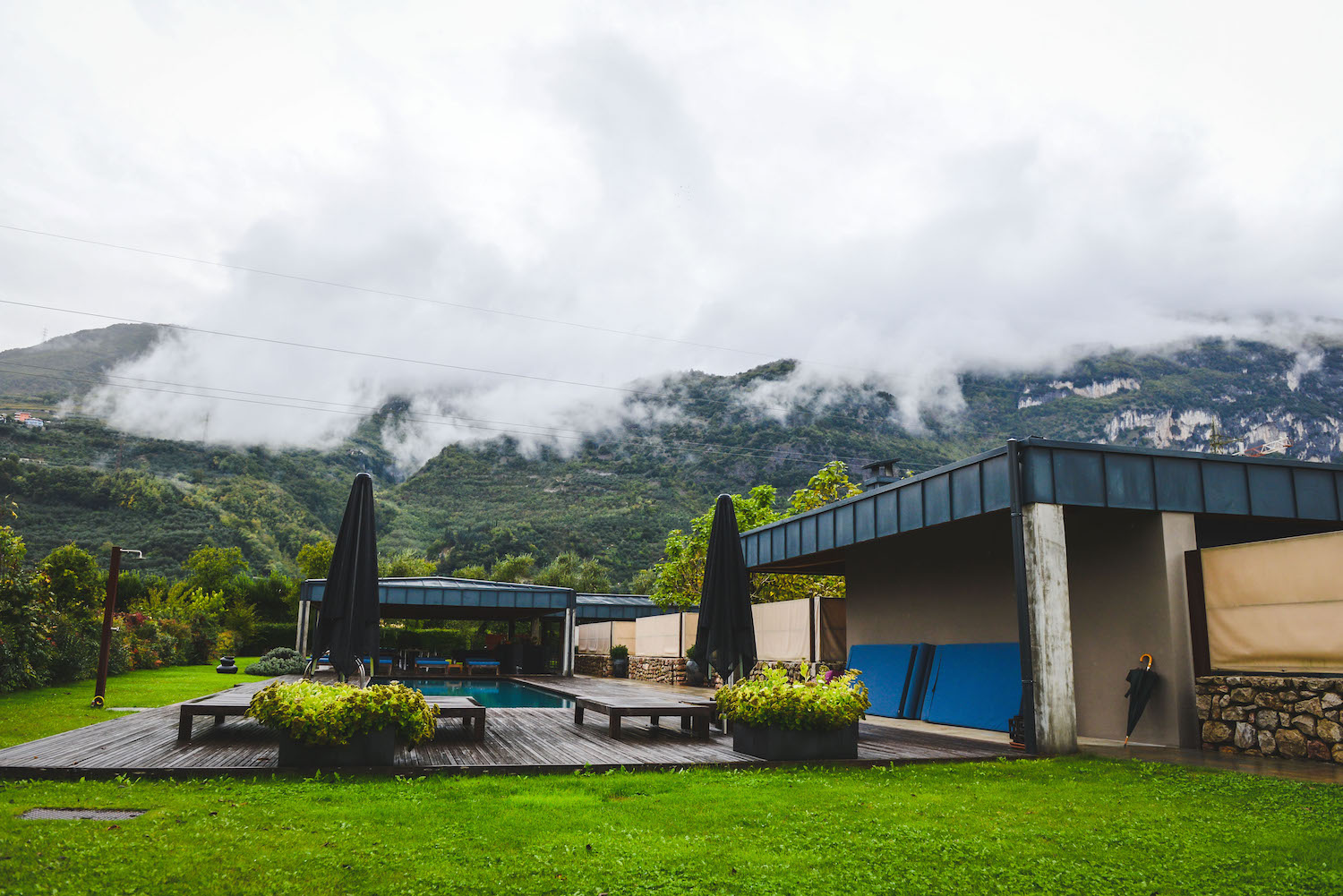 Wenn man vor dem großen Eingangstor des Vivere steht, würde man nicht für möglich halten, dass sich dahinter ein solch idyllischer Ort verbirgt. Zu schade, dass es während unseres Aufenthalts so sehr geregnet hat, denn so konnten wir den tollen Pool leider nicht testen. Dort gibt es übrigens den ganzen Tag Kuchen und süßes Gebäck sowie Mineralwasser zur freien Entnahme. Haben wir natürlich ausgenützt und uns ein großes Stück Apfelkuchen mit aufs Zimmer genommen.
