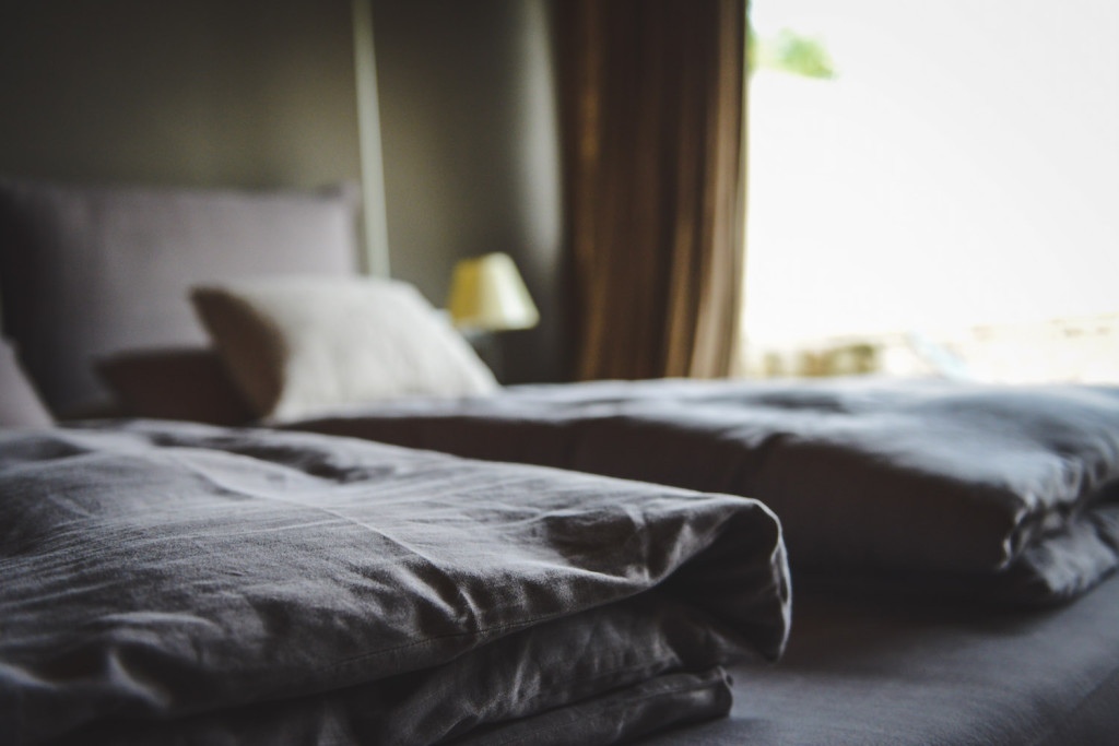 Es gibt ein super bequemes Bett mit toller Bettwäsche. Das Bad (auf dem Foto links um die Ecke) ist sehr großzügig und edel ausgestattet. Badewanne gibt’s zwar keine, dafür eine tolle Dusche.