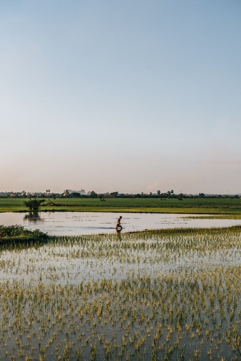 Unser Tipp: Die Reisfelder lassen sich perfekt mit einem Besuch der Kyauk Ka Lat Pagode kombinieren. Wenn du dem beschriebenen Weg folgst, gelangst du am Ende direkt zur Pagode.