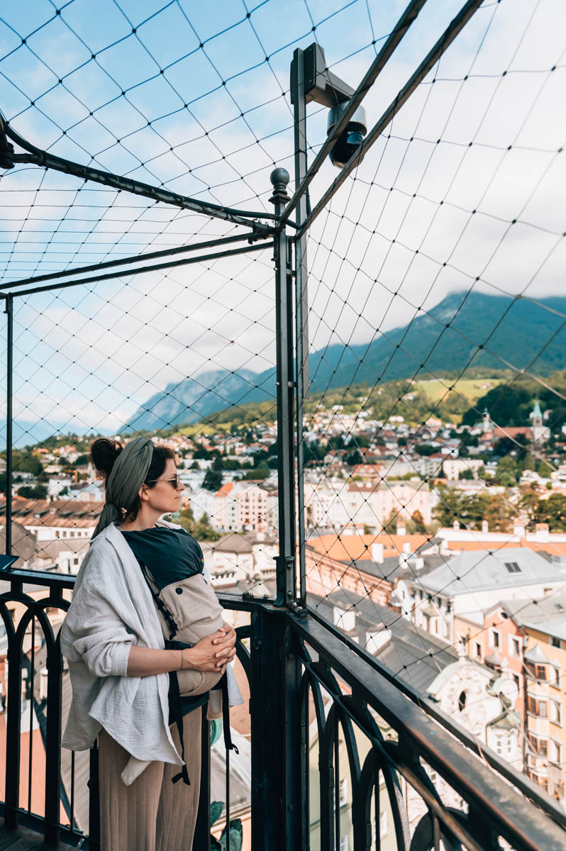 Von hier oben siehst du beispielsweise das Goldene Dachl aus der Vogelperspektive, die Nordkette, die Bergiselschanze und den Inn. Gut zu wissen: Die Aussichtsplattform ist recht schmal, daher wird es schnell kuschelig.