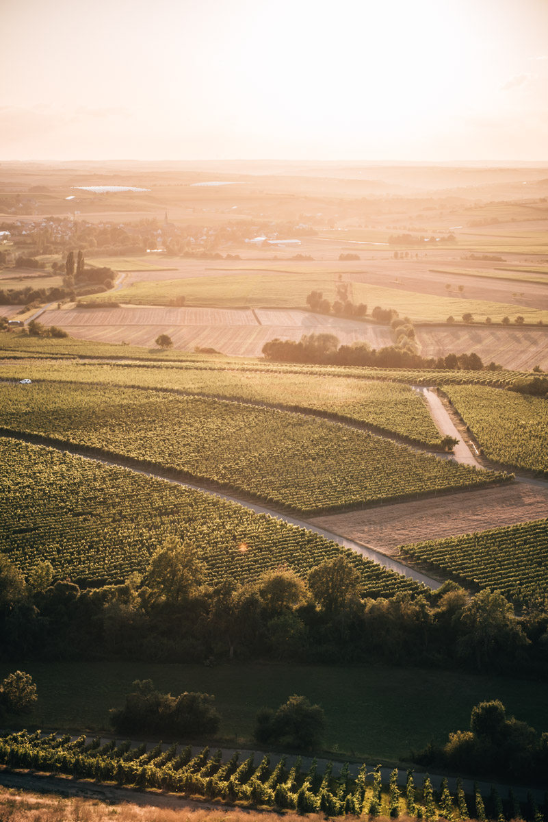 Der Tannenberg liegt etwas außerhalb des Ortszentrums von Hüttenheim und ist unbedingt einen Besuch wert. Hier befinden sich die Weinberge von Hüttenheim. Von der Spitze des Tannenbergs kannst du einen großartigen Sonnenuntergang mitten in den Weinreben erleben.