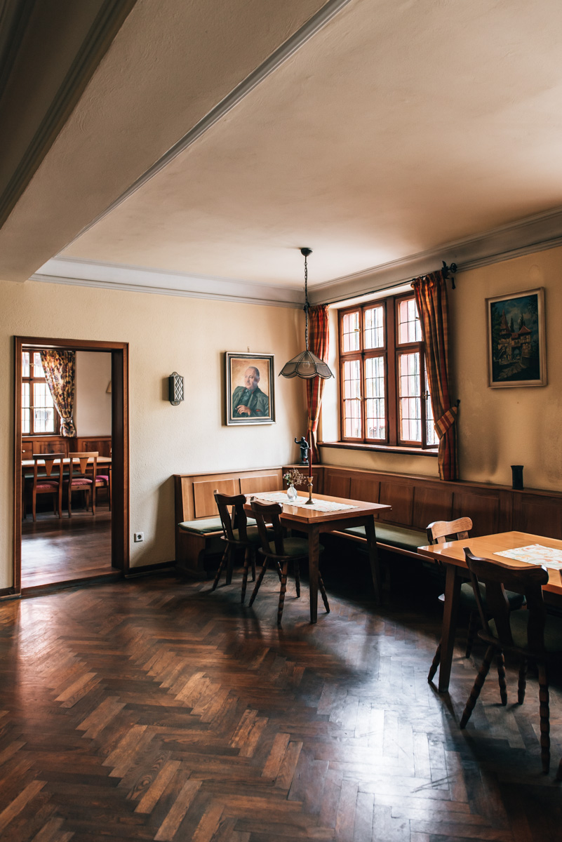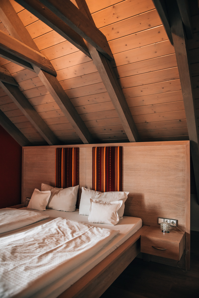 Nein, das ist kein Tippfehler: Das Rothweinhotel gehört zum Weingut Roth – daher der Name. Es befindet sich im Zentrum von Wiesenbronn, einem Ort, der etwa 10 Minuten mit dem Auto von Iphofen entfernt liegt. Unser Zimmer („Spätburgunder“) lag im obersten Stockwerk und war überraschend groß und sehr komfortabel.