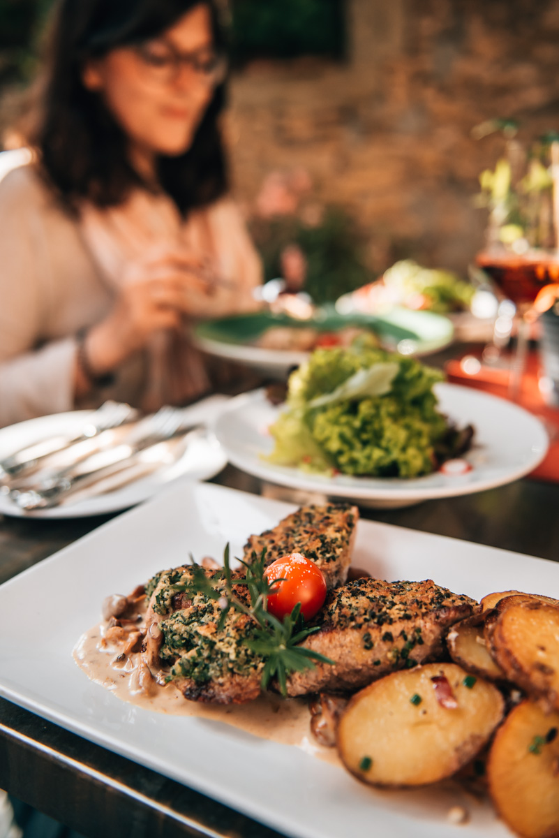 Und damit nicht genug: Essen und Wein haben ausgezeichnet geschmeckt. Das Restaurant befindet sich etwa 10 Minuten mit dem Auto außerhalb von Iphofen, doch es ist den kurzen Umweg wert – versprochen!
