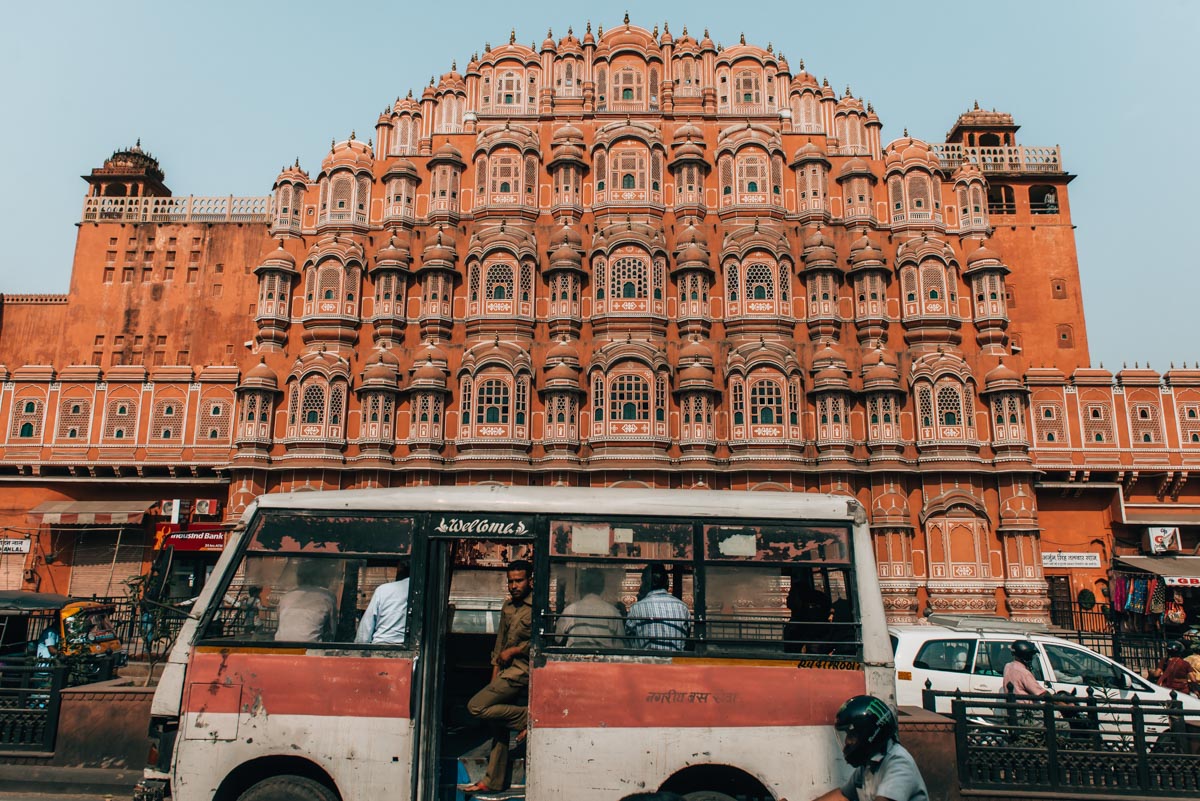 Das vermutlich berühmteste Bauwerk von Jaipur, Wahrzeichen der Stadt und eine der wichtigsten Sehenswürdigkeiten trägt den Namen Palast der Winde. Dessen Architektur ist beispiellos: Der Palast der Winde wurde aus rotem Sandstein erbaut und erstreckt sich über fünf Stockwerke. Das Kuriose dabei: Das Bauwerk ist genau genommen nur eine Fassade mit Treppenaufgängen an der Rückseite.