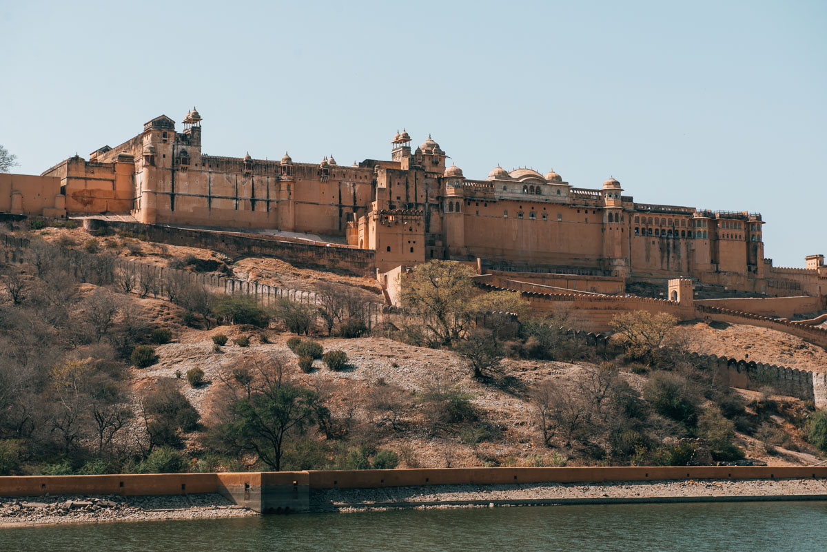 Übrigens: Auf dem Weg zum Amber Fort lohnt sich ein Zwischenstopp beim Wasserschloss namens Jal Mahal, das majestätisch auf dem See herausragt. Es kann nicht besichtigt werden, ist aber ein tolles Fotomotiv.
