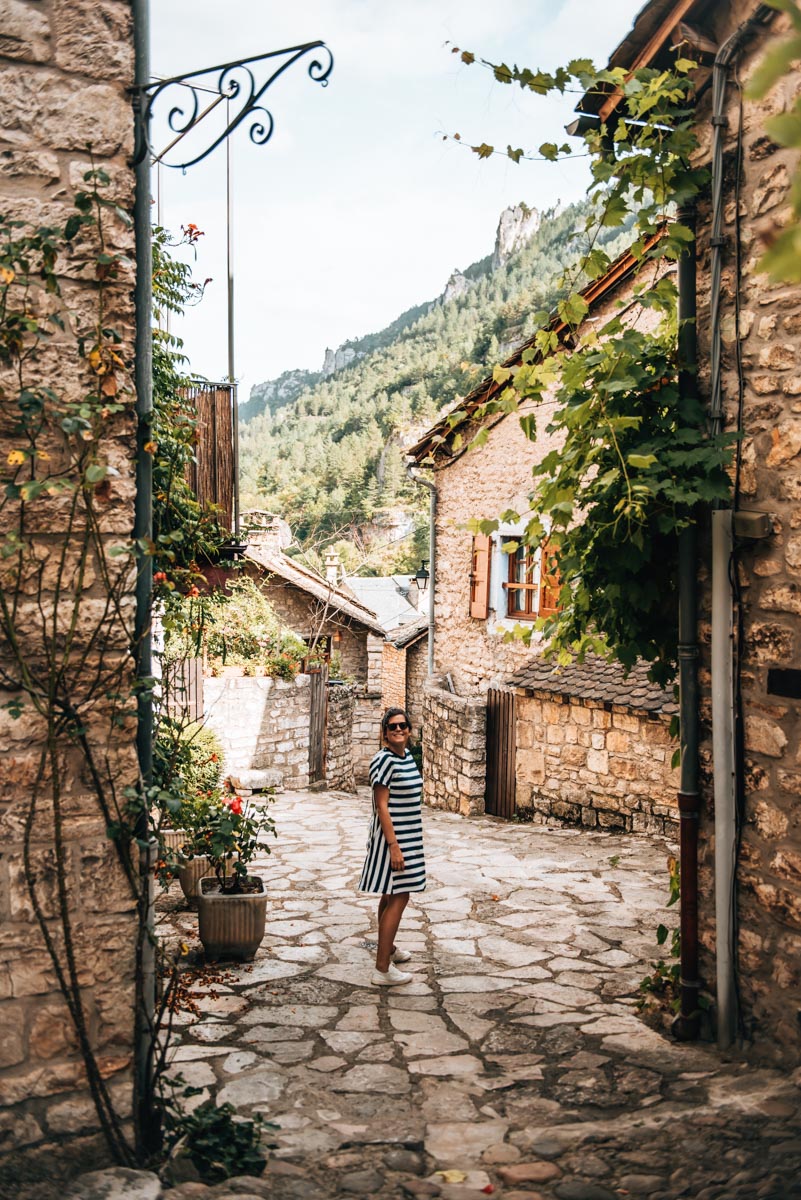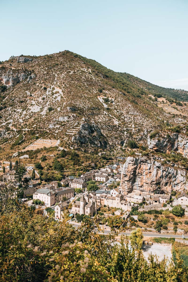 La Malène ist ein Bilderbuch-Dorf in der Tarnschlucht. Der Blickfang von La Malène ist die Burg namens „Manoir de Montesquoi“ und allein für diesen Anblick lohnt sich ein Zwischenstopp. Kleiner Tipp: Die ganze Schönheit des Bergdorfs siehst du erst aus ein wenig Entfernung. Wenn du die Serpentinen auf der anderen Seite der Schlucht hochfährst, hast du einen tollen Panoramablick über La Malène.